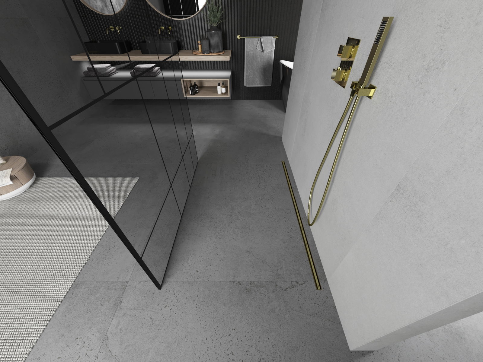 Mexen Kioto paroi de douche autoportante 140 x 200 cm, motif noir 8 mm, doré - 800-140-002-50-78