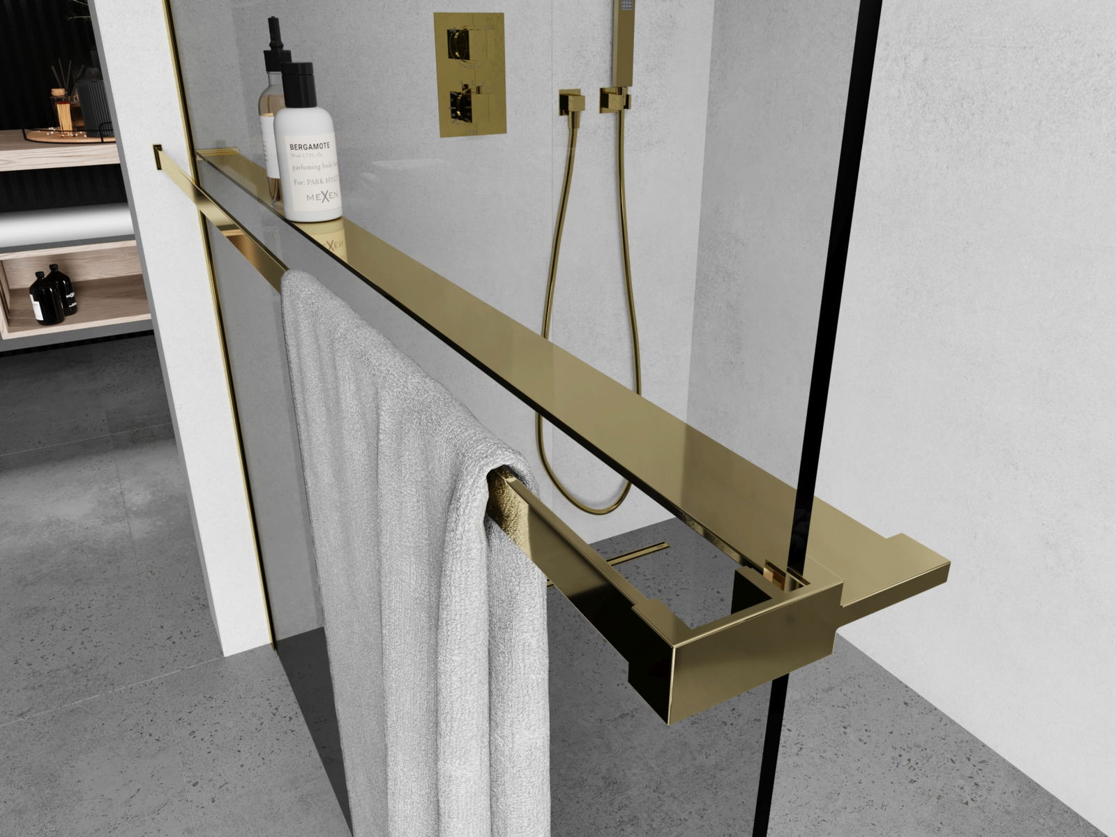 Mexen étagère pour paroi de douche avec barre pour serviettes, dorée - 800-02-50