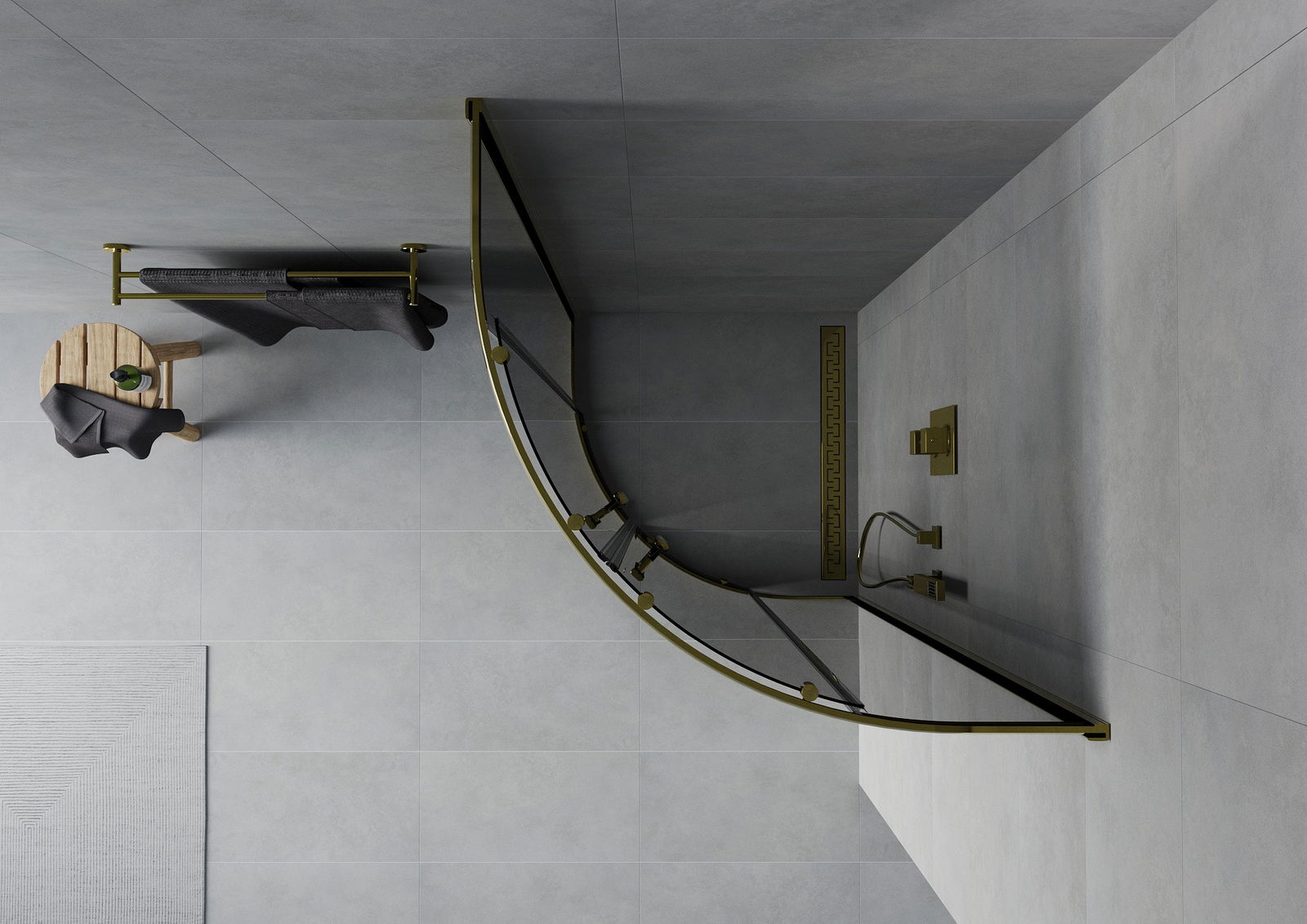 Mexen Rio cabine de douche semi-circulaire 80 x 80 cm, graphite, or - 863-080-080-50-40