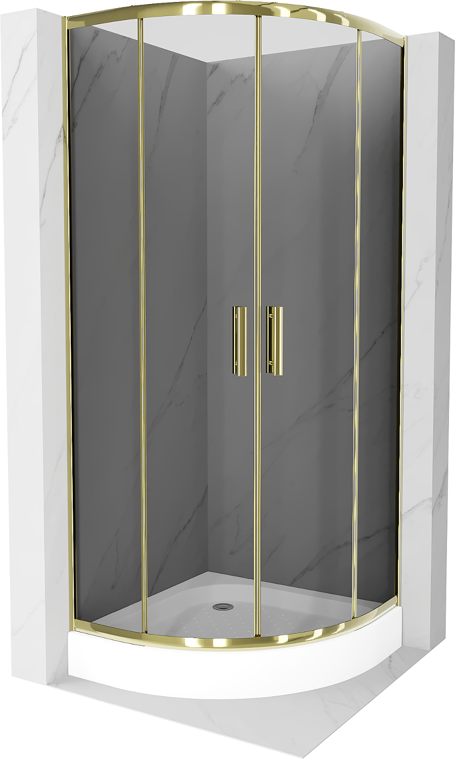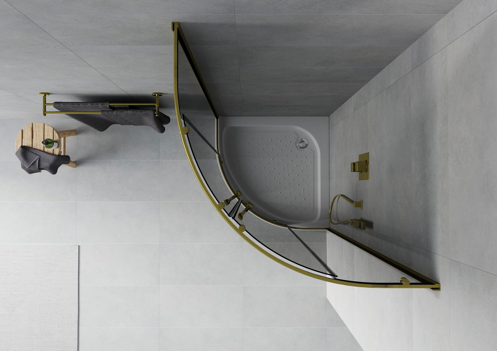 Mexen Rio cabine de douche semi-circulaire 70 x 70 cm, graphite, or + receveur de douche, blanc - 863-070-070-50-0-4710