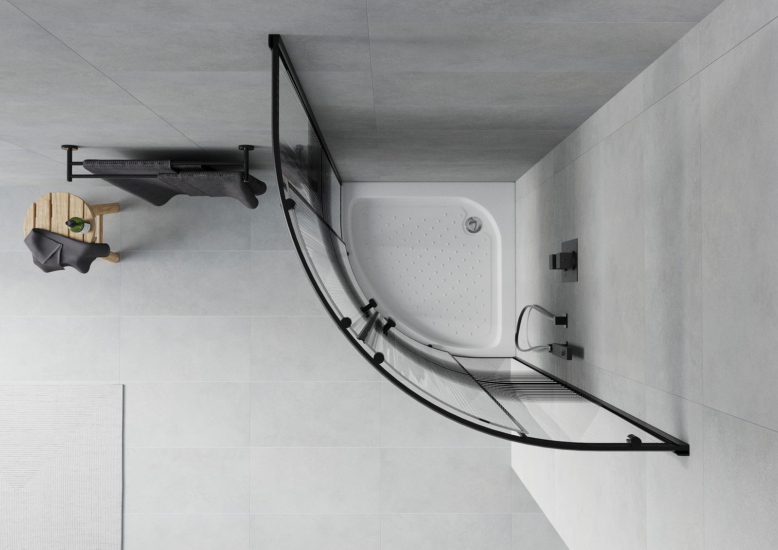 Mexen Rio cabine de douche semi-circulaire 90 x 90 cm, bandes noires, noire + receveur, blanc - 863-090-090-70-20-4710