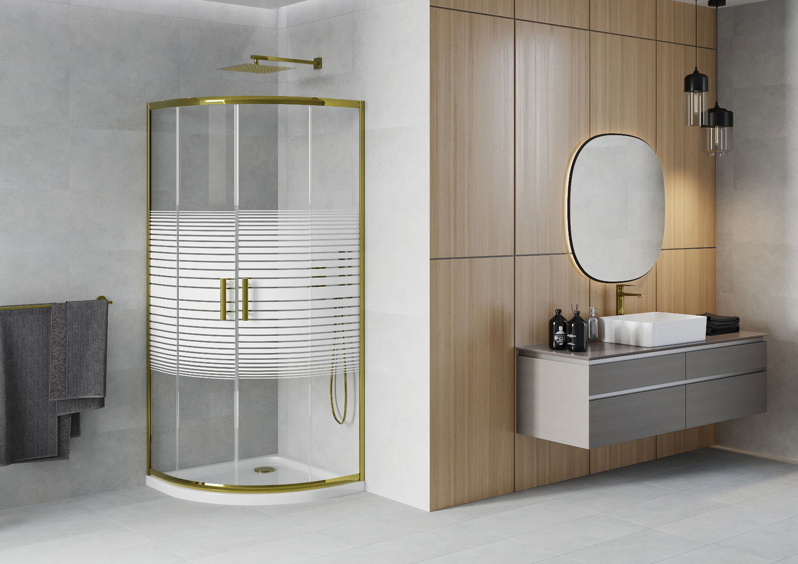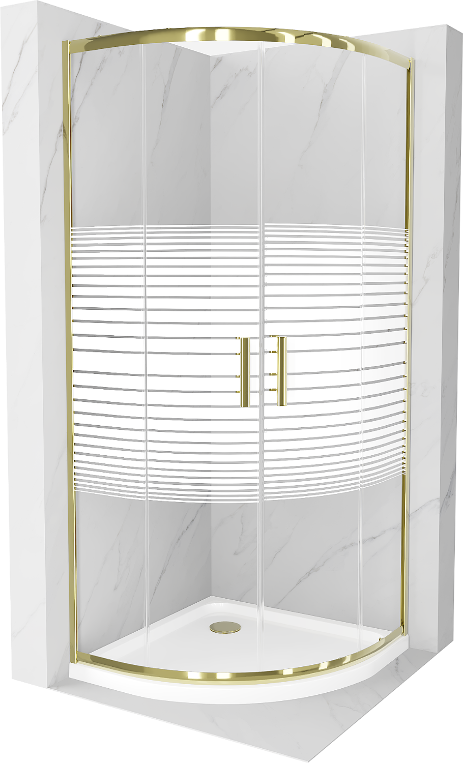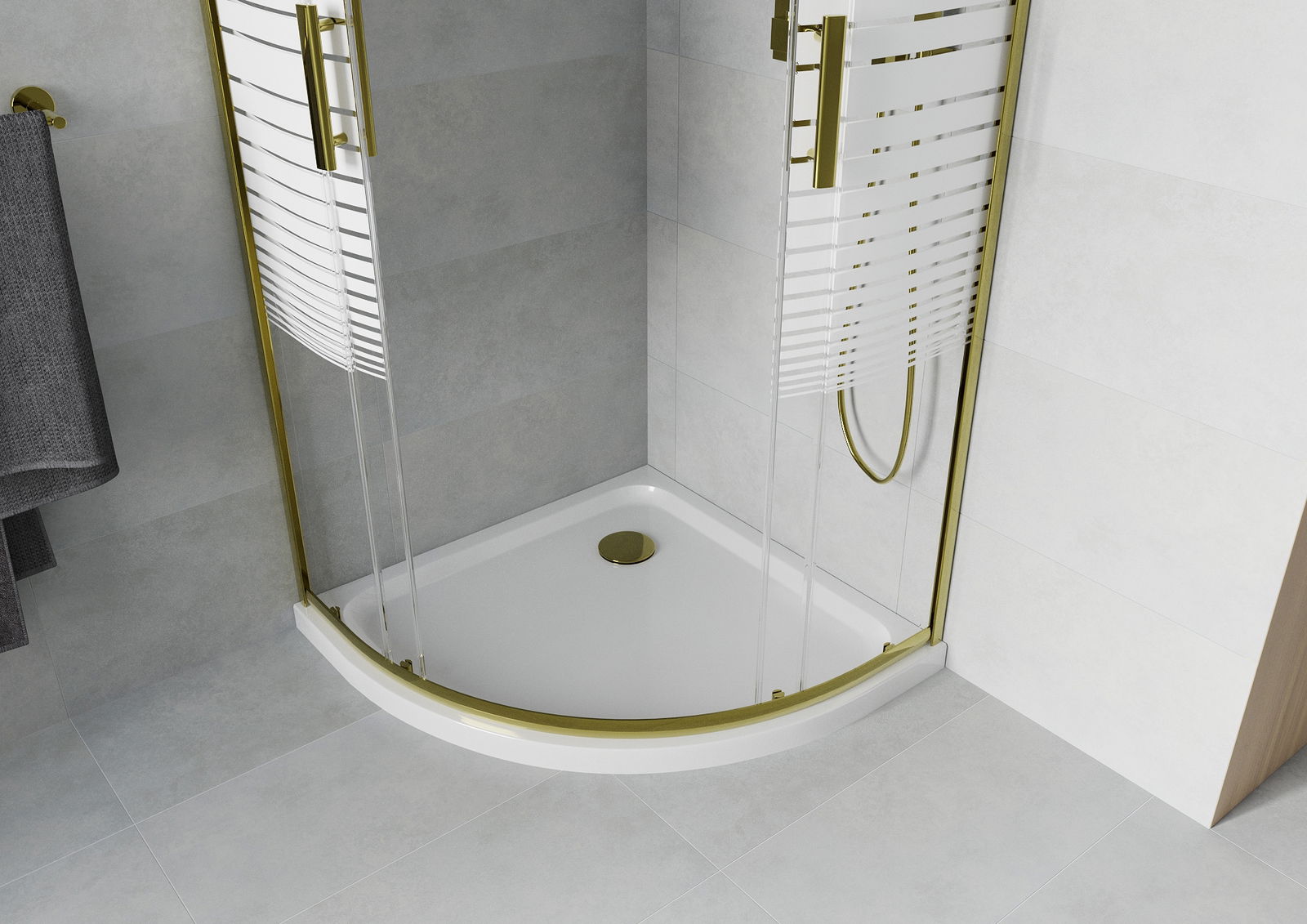 Mexen Rio cabine de douche semi-circulaire 80 x 80 cm, bandes blanches, or + receveur plat, blanc - 863-080-080-50-20-4110G