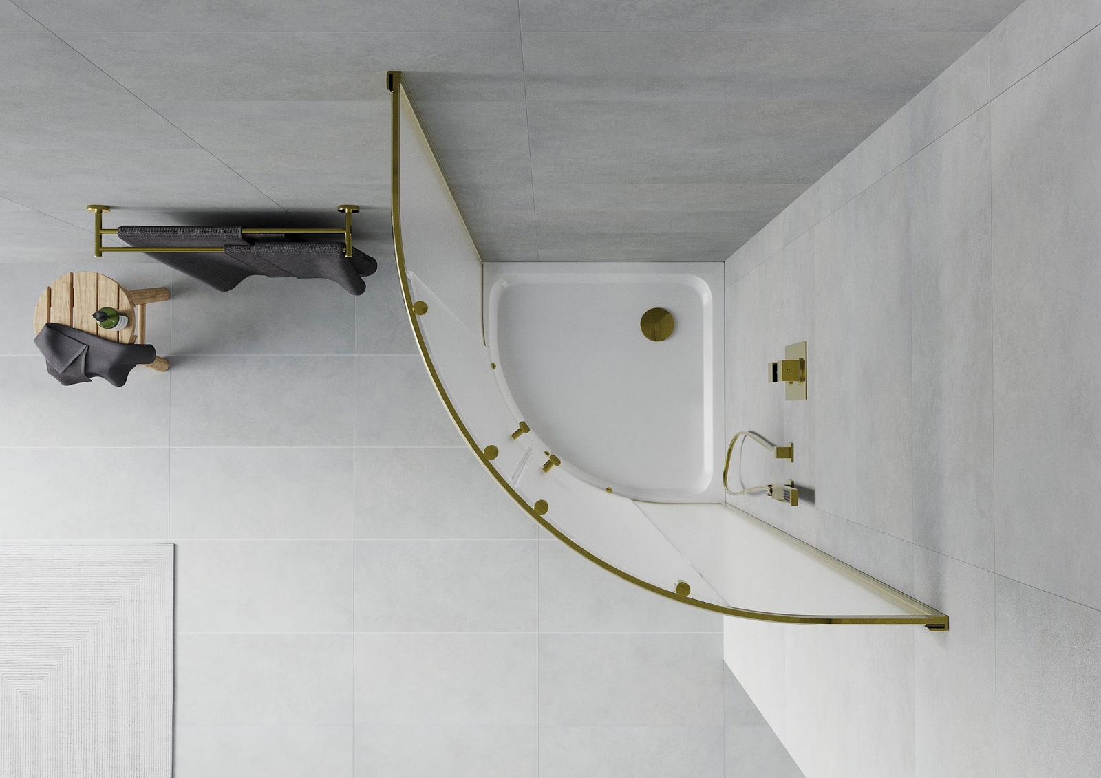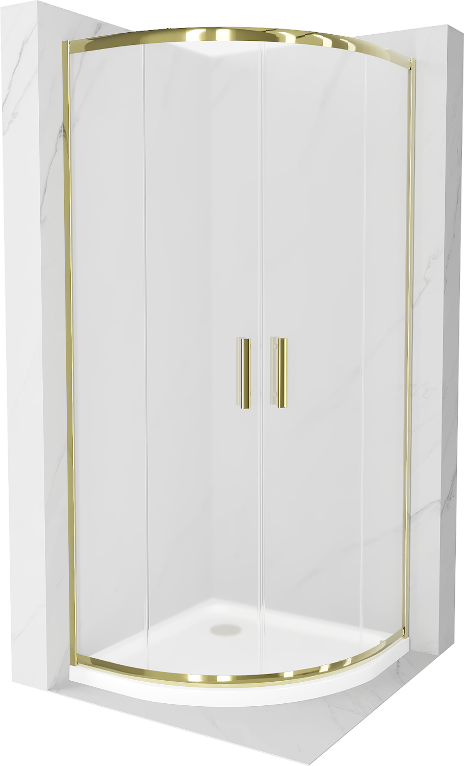 Mexen Rio cabine de douche semi-circulaire 90 x 90 cm, givrée, doré + bac à douche Flat, blanc - 863-090-090-50-30-4110G