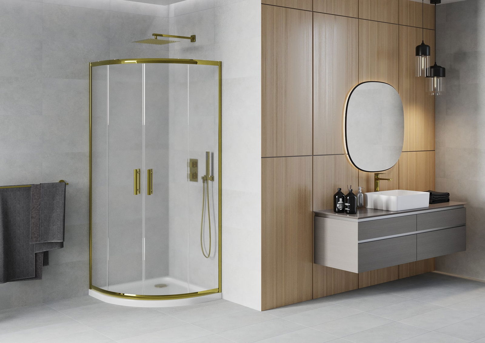 Les portes coulissantes se déplacent sur des rails spéciaux et ne nécessitent pas d'espace supplémentaire pour être ouvertes, ce qui les rend idéales pour les petites salles de bains. Grâce à des roulettes doubles en plastique durable, leur mouvement est fluide.