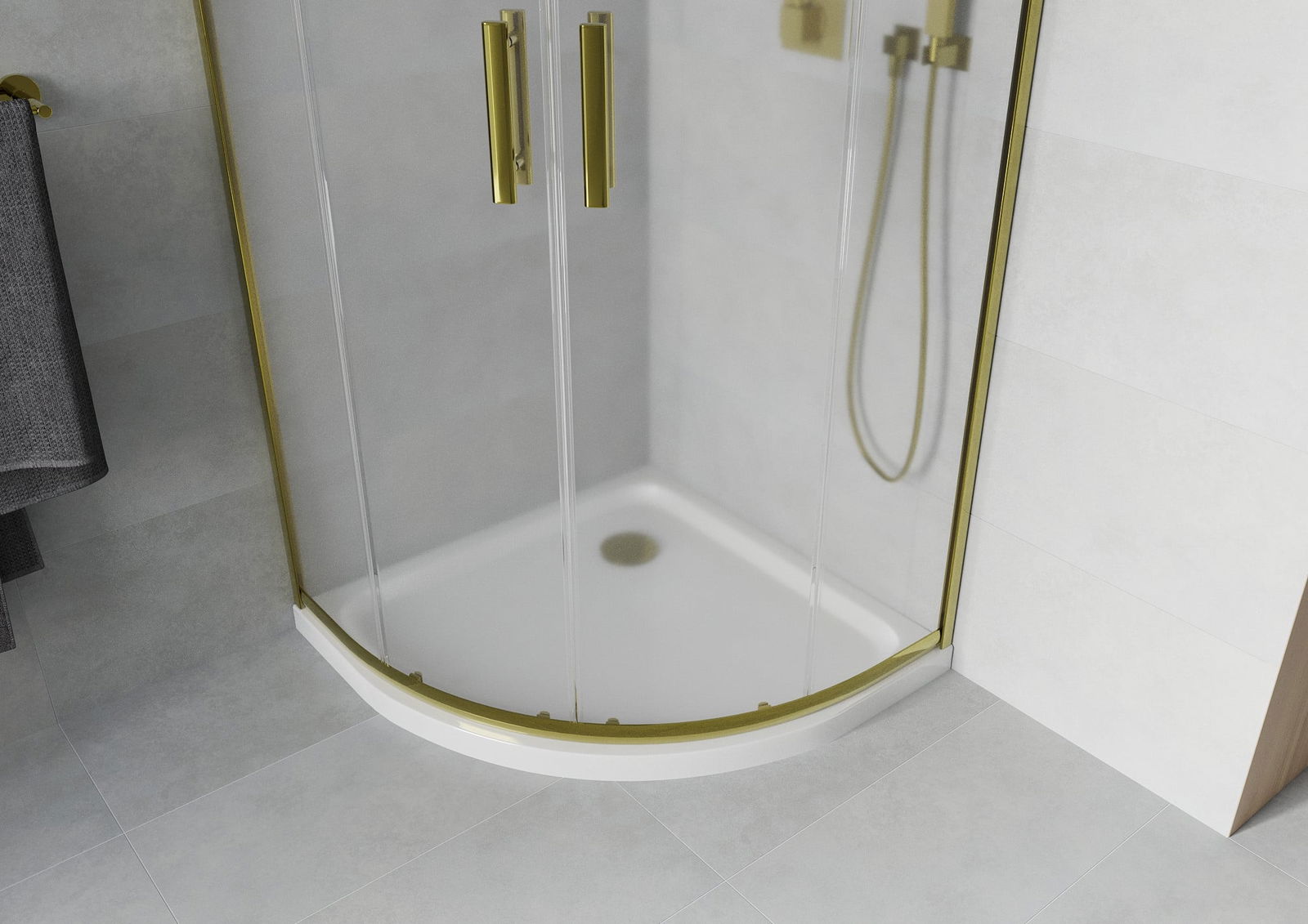 La poignée pratique et confortable est fabriquée en métal durable et résistant. Sa forme à la mode, combinée à une finition assortie à la couleur des profilés, donne à l'ensemble un aspect moderne et stylé, soulignant l'esthétique de chaque salle de bain.