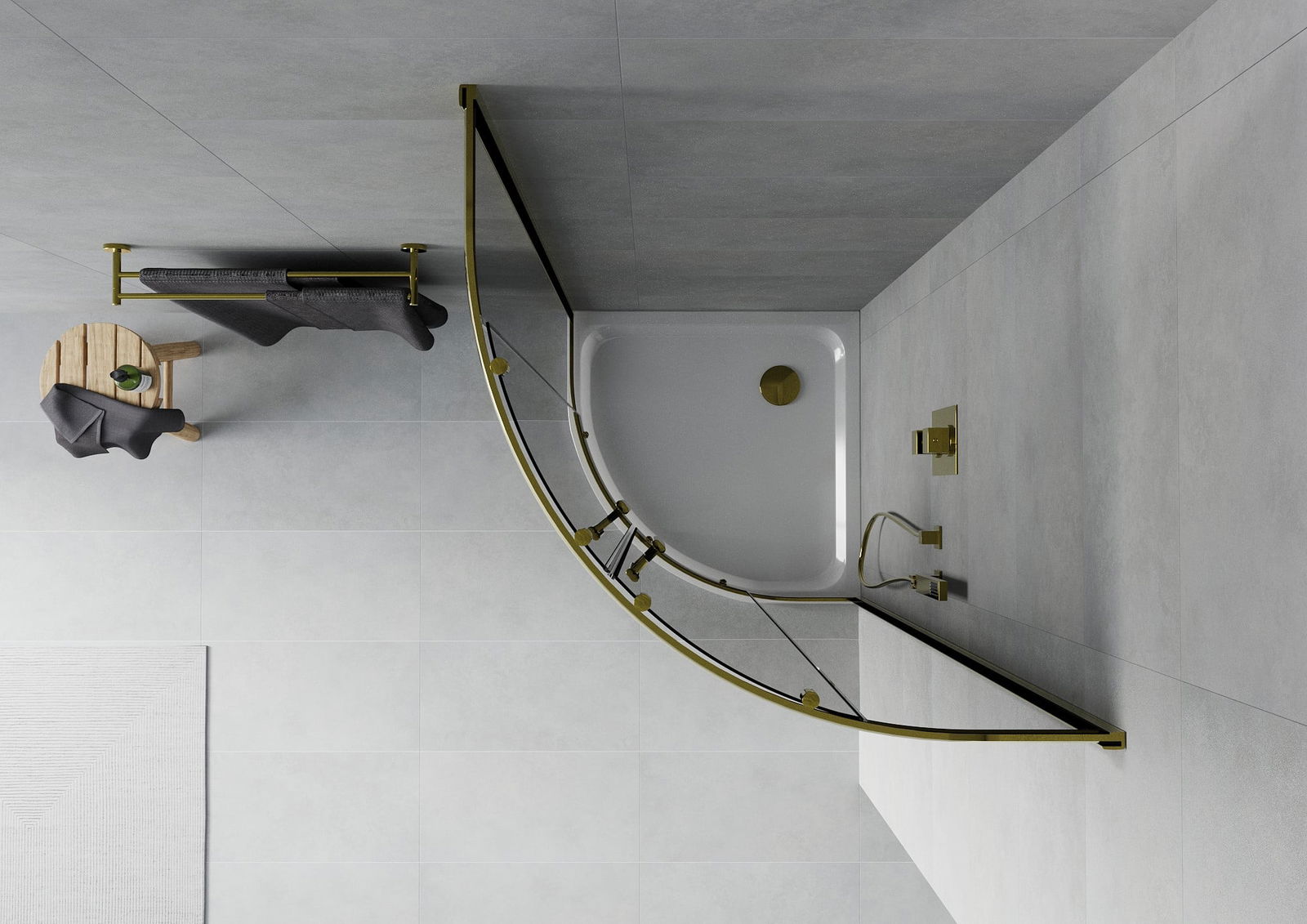 Mexen Rio cabine de douche semi-circulaire 80 x 80 cm, graphite, or + receveur Flat, blanc - 863-080-080-50-40-4110G