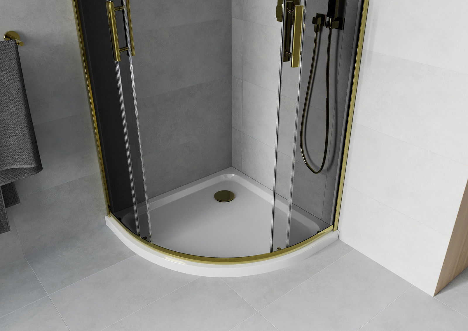 La poignée pratique et confortable est fabriquée en métal durable et résistant. Sa forme à la mode, combinée à une finition assortie à la couleur des profilés, donne à l'ensemble un aspect moderne et stylé, soulignant l'esthétique de chaque salle de bain.