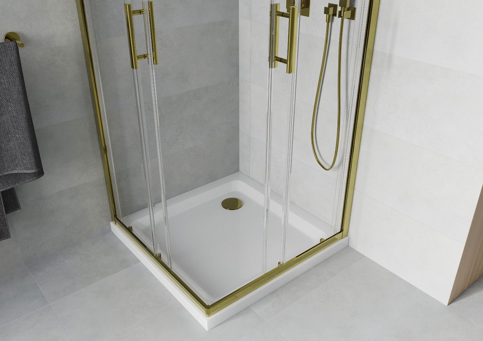 Mexen Rio cabine de douche carrée 90 x 90 cm, transparente, dorée + receveur Flat, blanc - 860-090-090-50-00-4010G