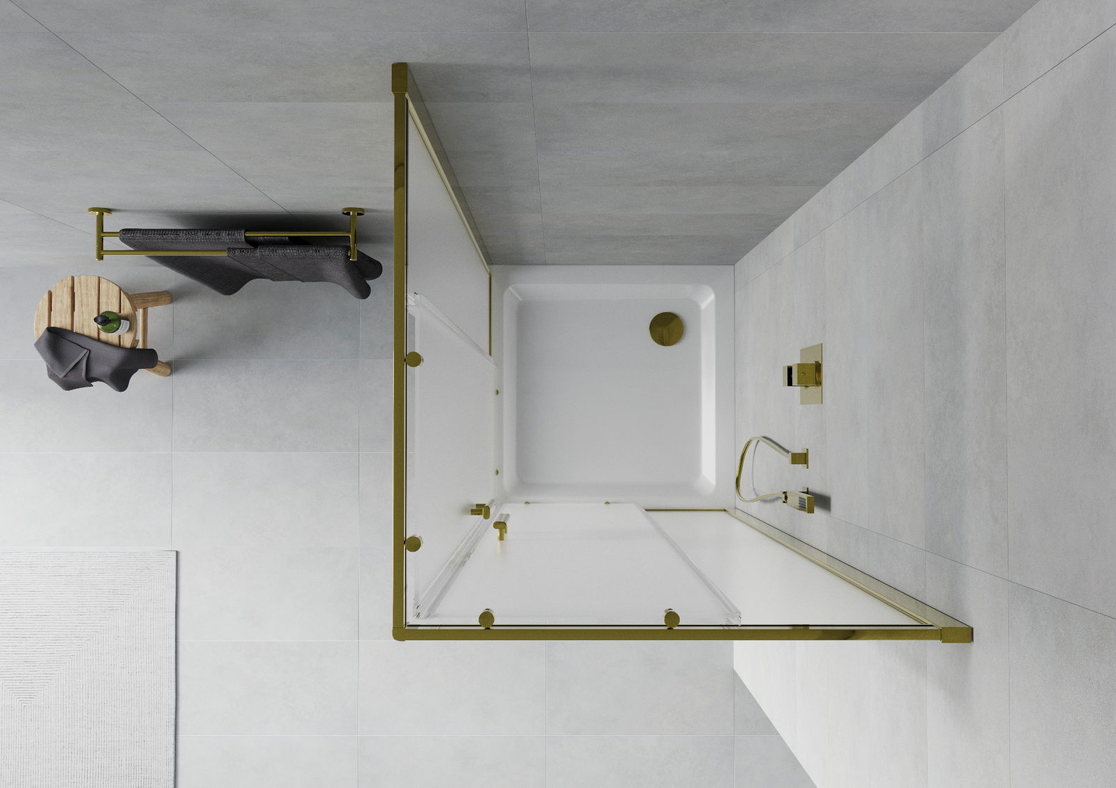 Mexen Rio cabine de douche carrée 90 x 90 cm, givré, doré + receveur Flat, blanc - 860-090-090-50-30-4010G