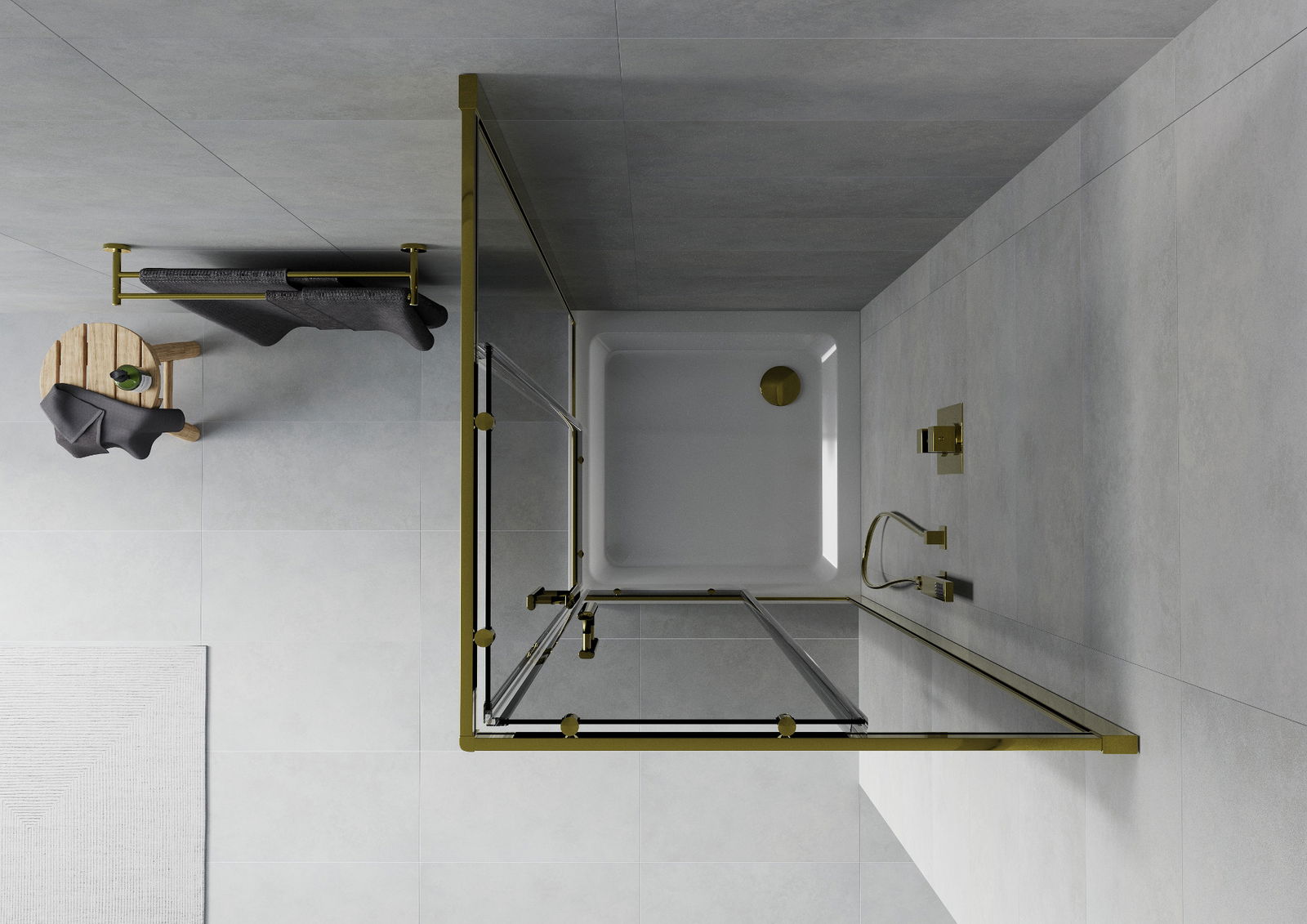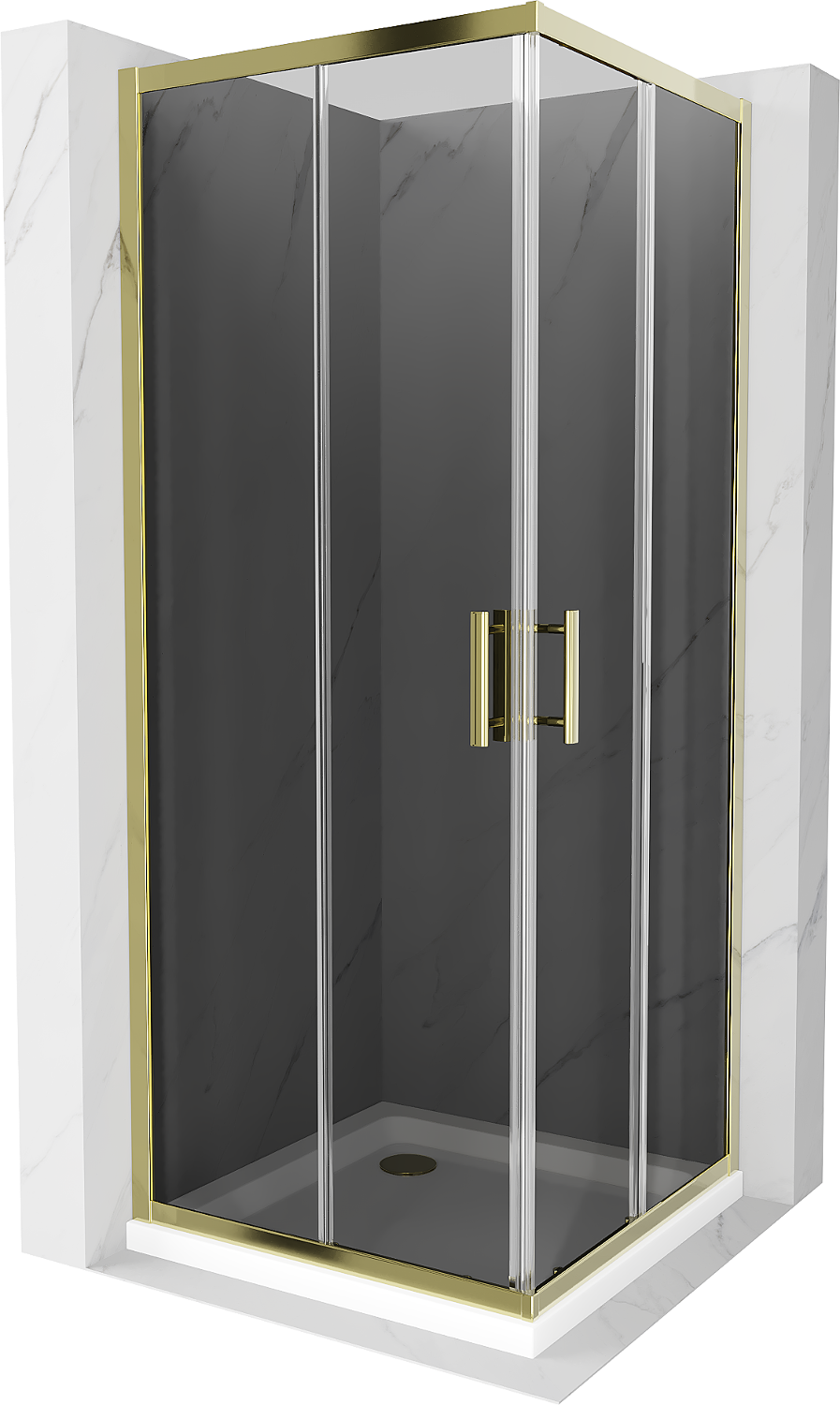 Mexen Rio cabine de douche carrée 70 x 70 cm, graphite, or + receveur Flat, blanc - 860-070-070-50-40-4010G