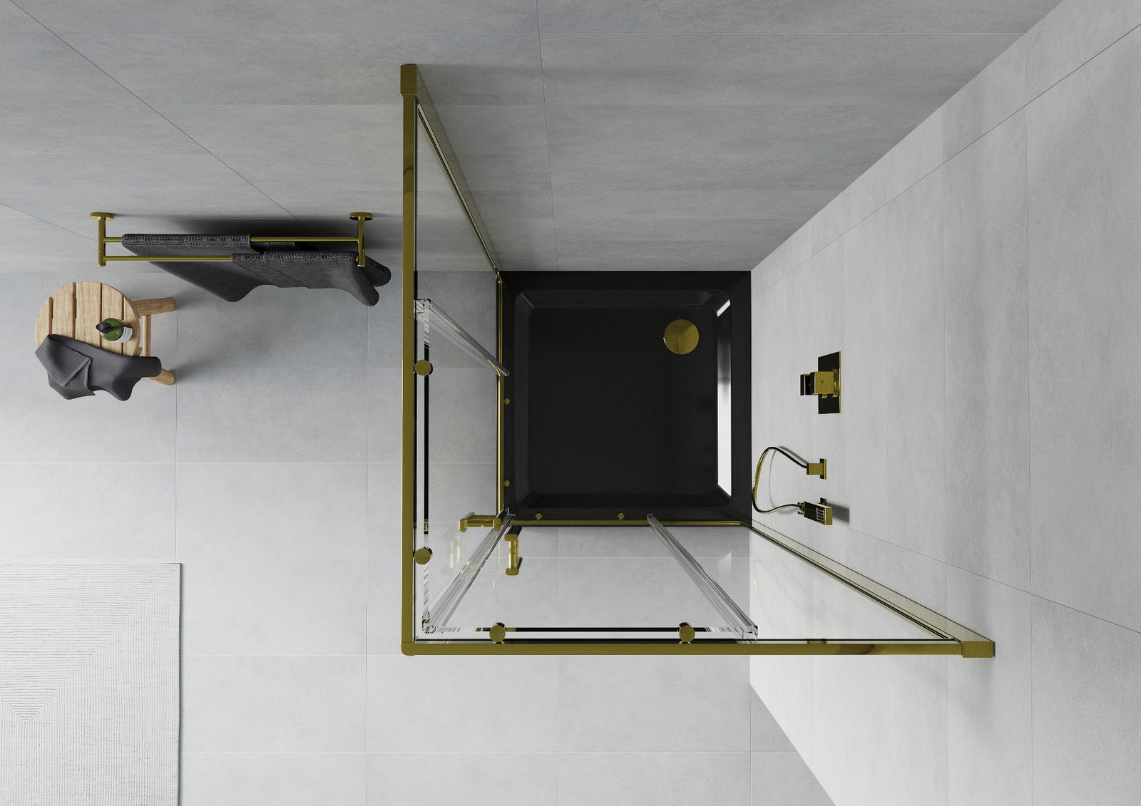 Mexen Rio cabine de douche carrée 80 x 80 cm, transparente, dorée + receveur Flat, noir- 860-080-080-50-00-4070G