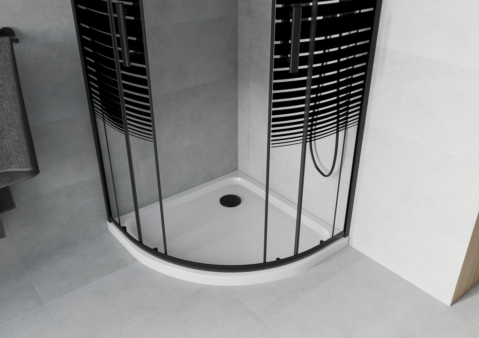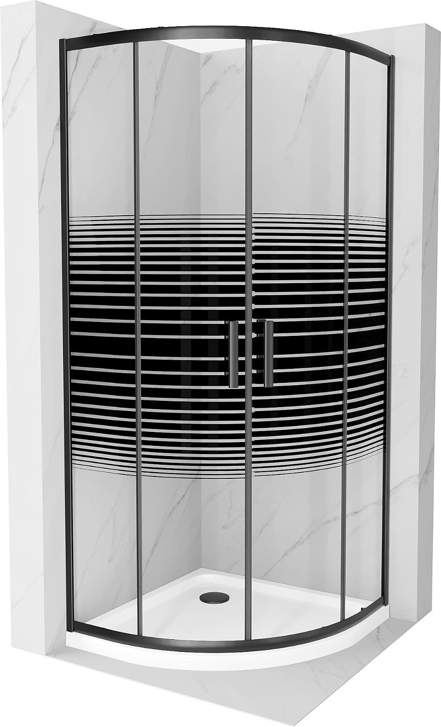 Cabine de douche semi-circulaire Mexen Rio 80 x 80 cm, bandes noires, noir + receveur de douche plat, blanc - 863-080-080-70-20?