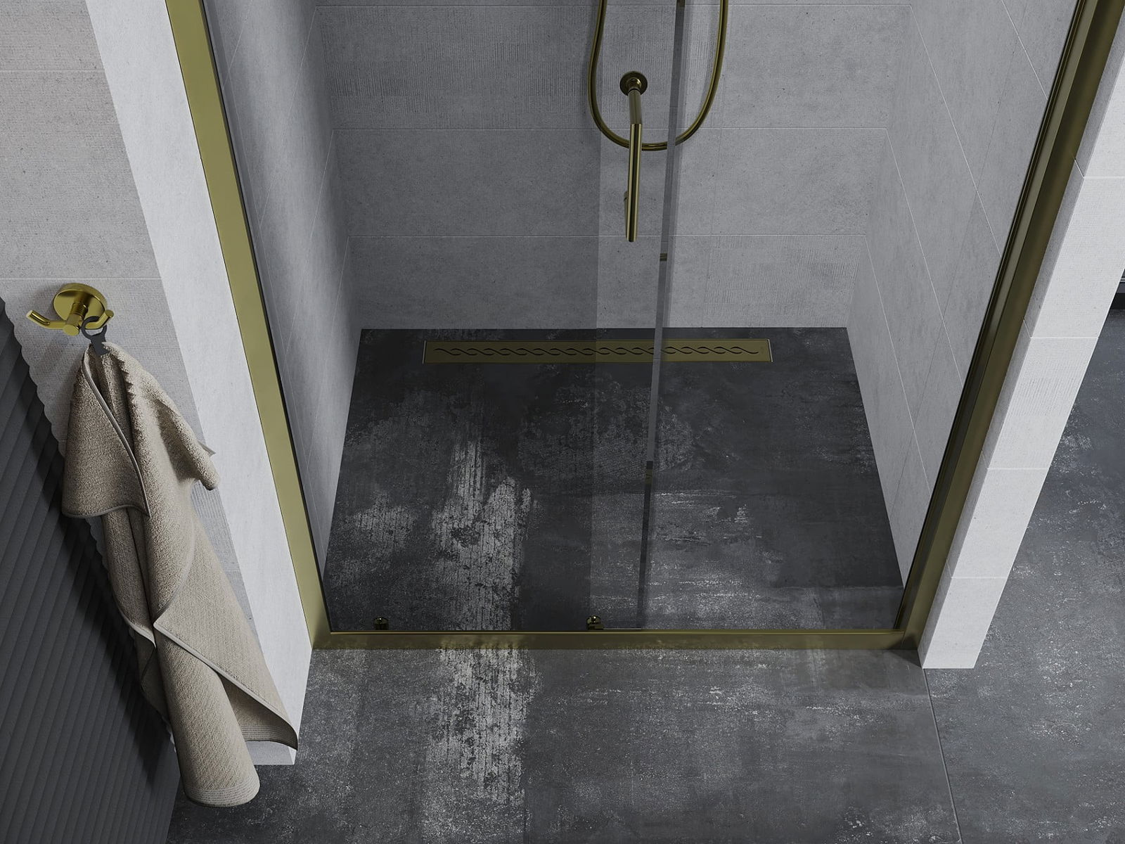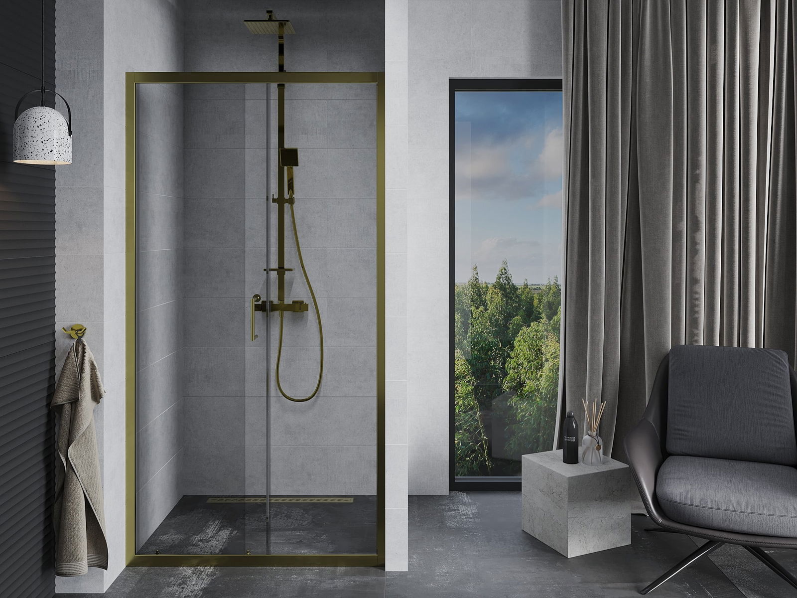 La poignée pratique et confortable est fabriquée en métal durable et résistant. Sa forme à la mode, combinée à une finition assortie à la couleur des profilés, donne à l'ensemble un aspect moderne et stylé, soulignant l'esthétique de chaque salle de bain.