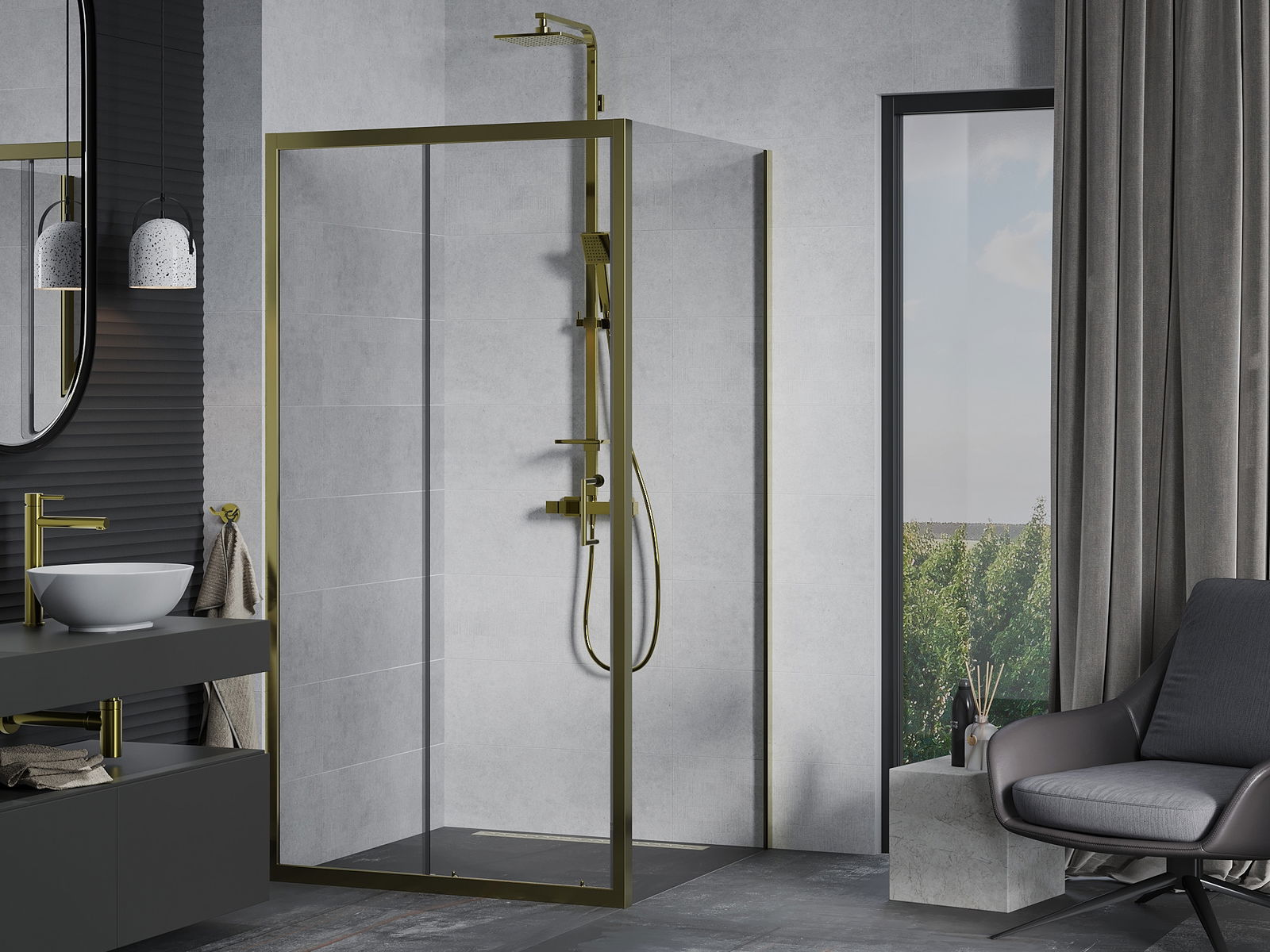 Mexen Apia cabine de douche coulissante 100 x 100 cm, transparent, or - 840-100-100-50-00