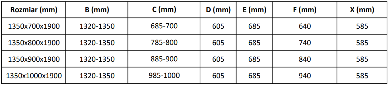 Taille: 135x80 cm (porte 135 cm, paroi 80 cm)