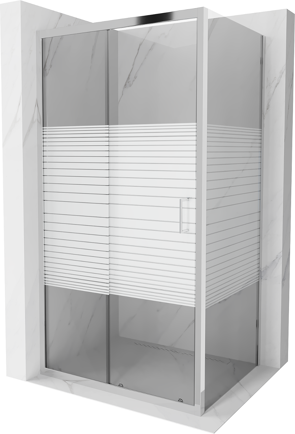 Mexen Apia cabine de douche coulissante 135 x 80 cm, bandes blanches, chrome - 840-135-080-01-20