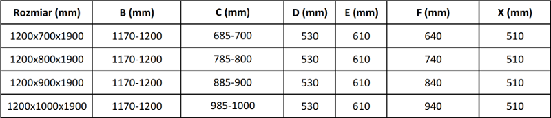 Taille : 120x100 cm (porte 120 cm, paroi 100 cm)