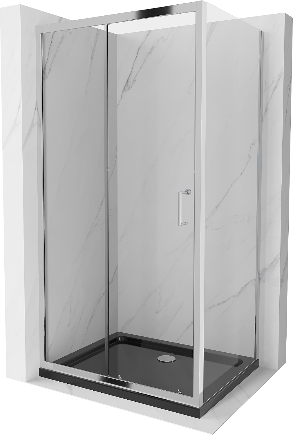 Mexen Apia cabine de douche coulissante 120 x 100 cm, transparent, chrome + receveur Flat, noir - 840-120-100-01-00-4070