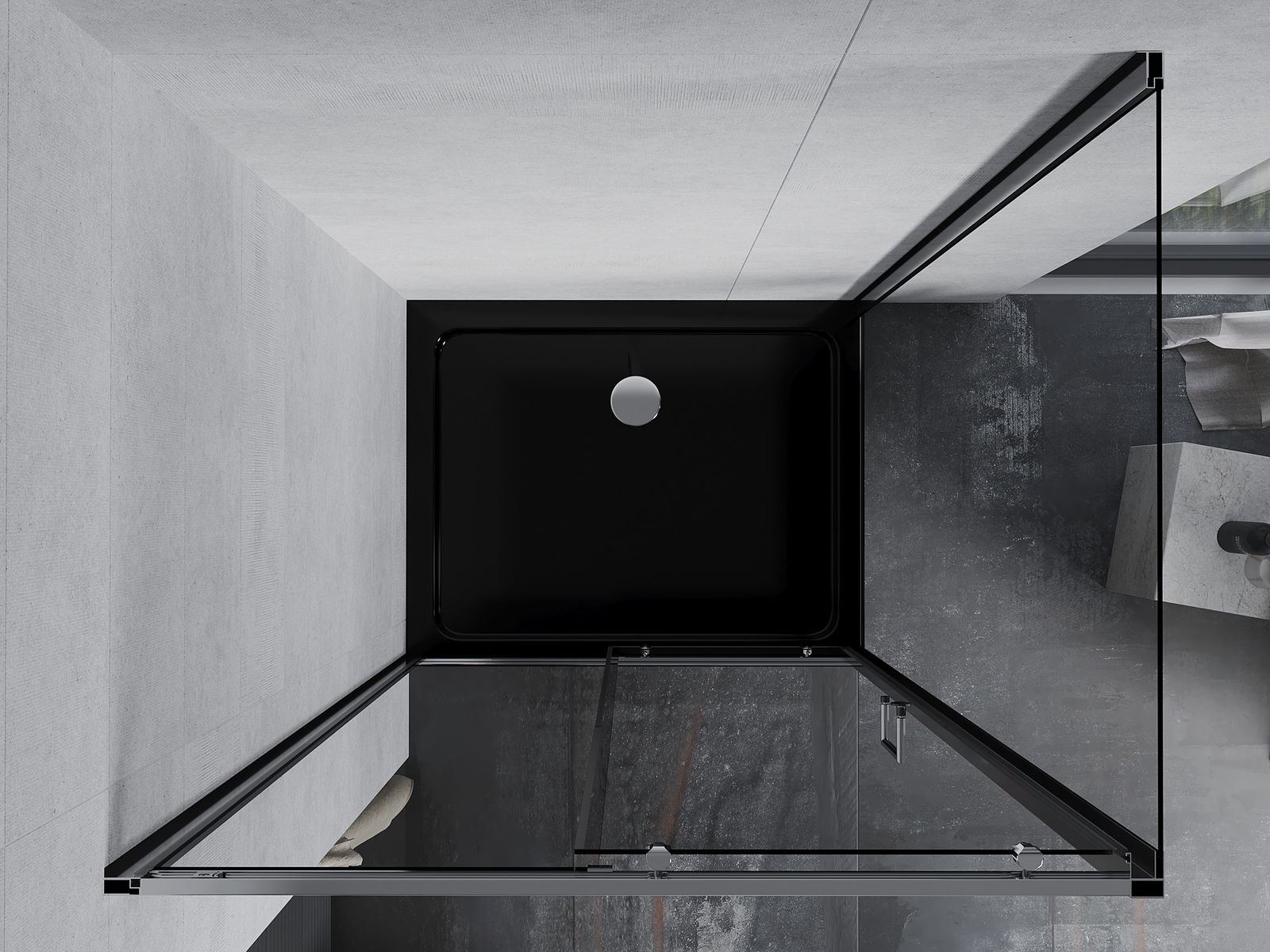 La poignée pratique et confortable est fabriquée en métal durable et résistant. Sa forme à la mode, combinée à une finition assortie à la couleur des profilés, donne à l'ensemble un aspect moderne et stylé, soulignant l'esthétique de chaque salle de bain.