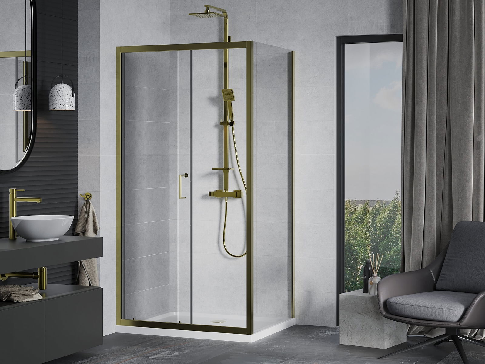 Mexen Apia cabine de douche coulissante 90 x 100 cm, transparente, dorée + receveur Flat, blanc - 840-090-100-50-00-4010G