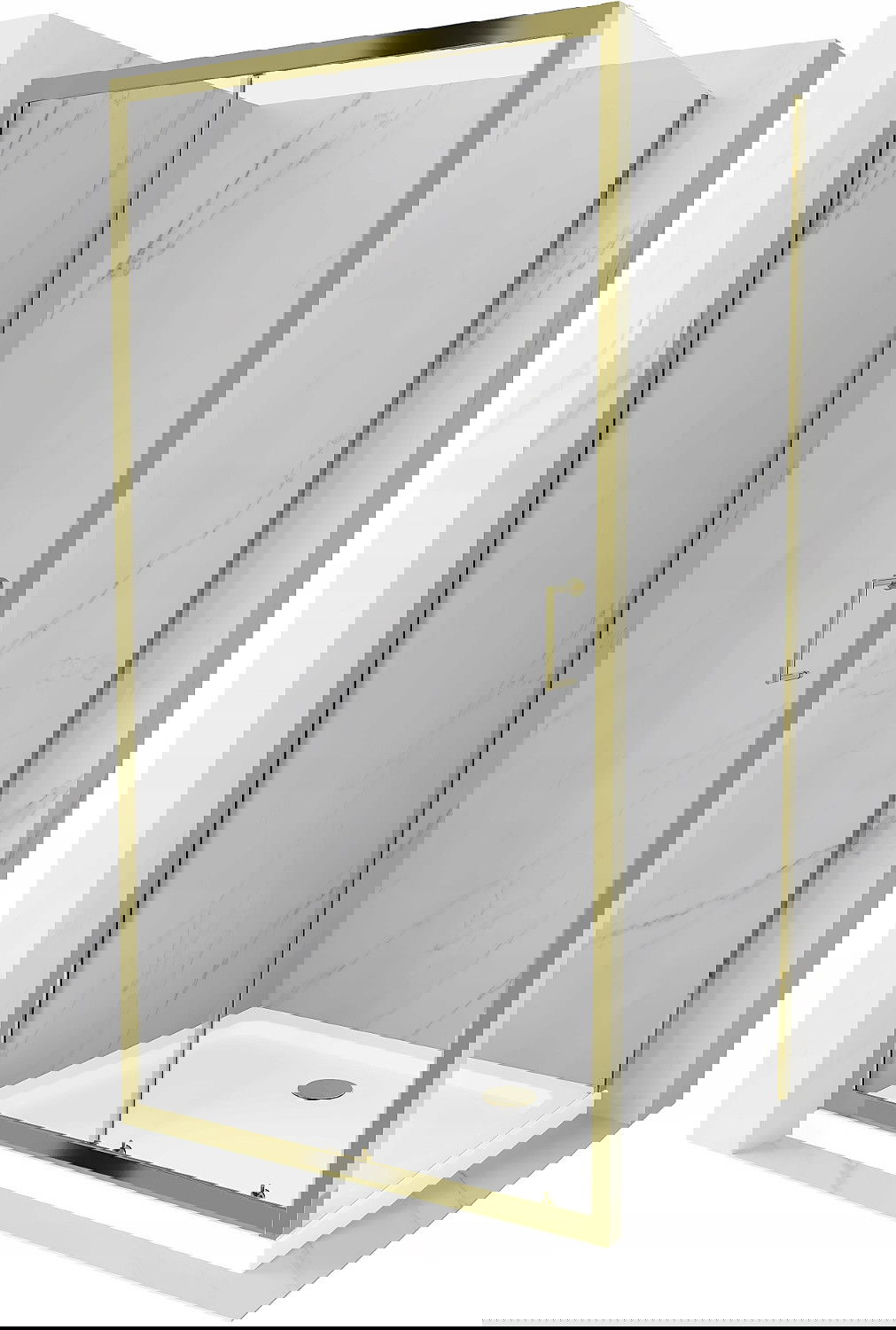 Mexen Apia cabine de douche coulissante 100 x 80 cm, transparent, doré + receveur Flat, blanc- 840-100-080-50-00-4010G