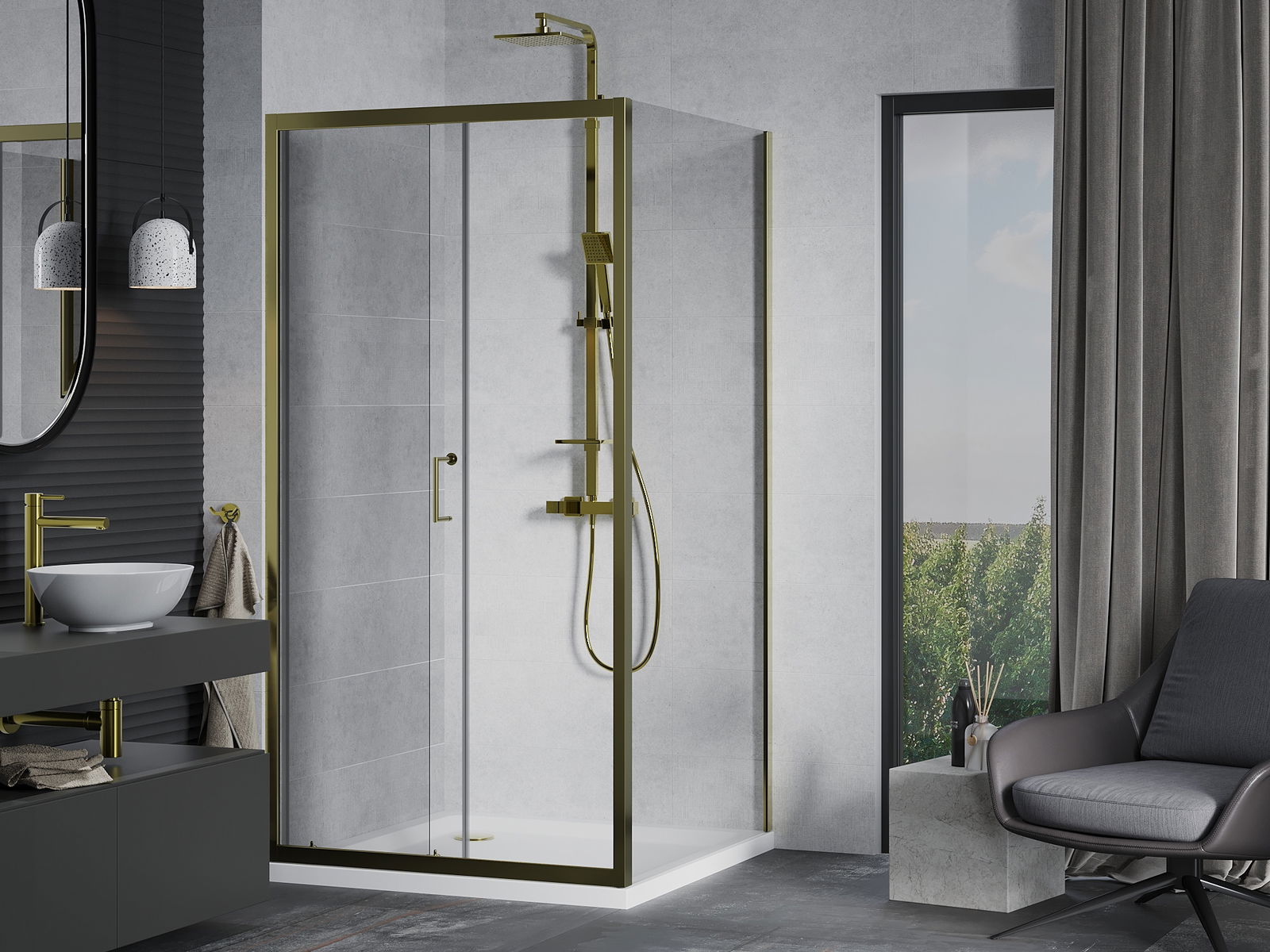 La poignée pratique et confortable est fabriquée en métal durable et résistant. Sa forme à la mode, combinée à une finition assortie à la couleur des profilés, donne à l'ensemble un aspect moderne et stylé, soulignant l'esthétique de chaque salle de bain.