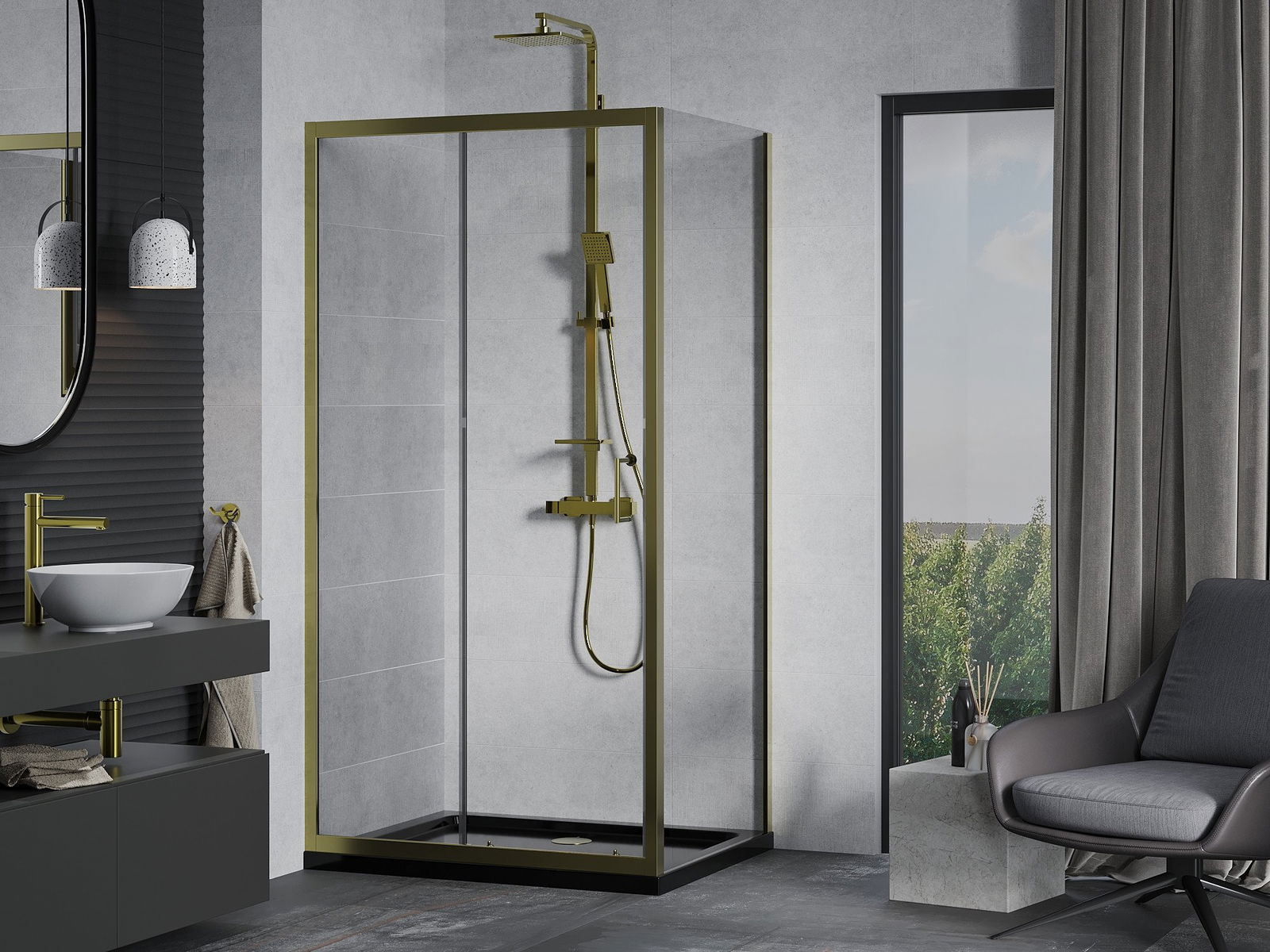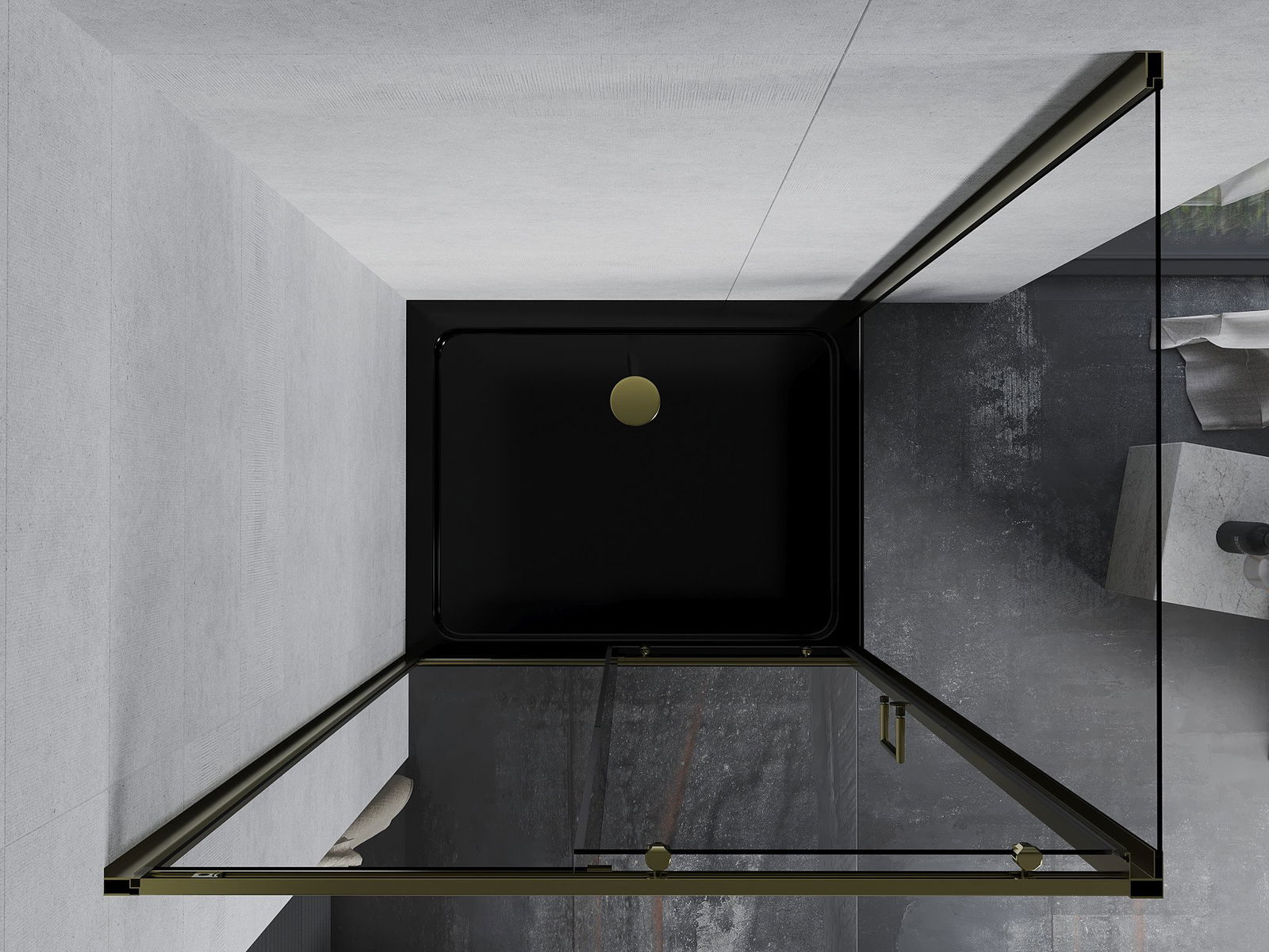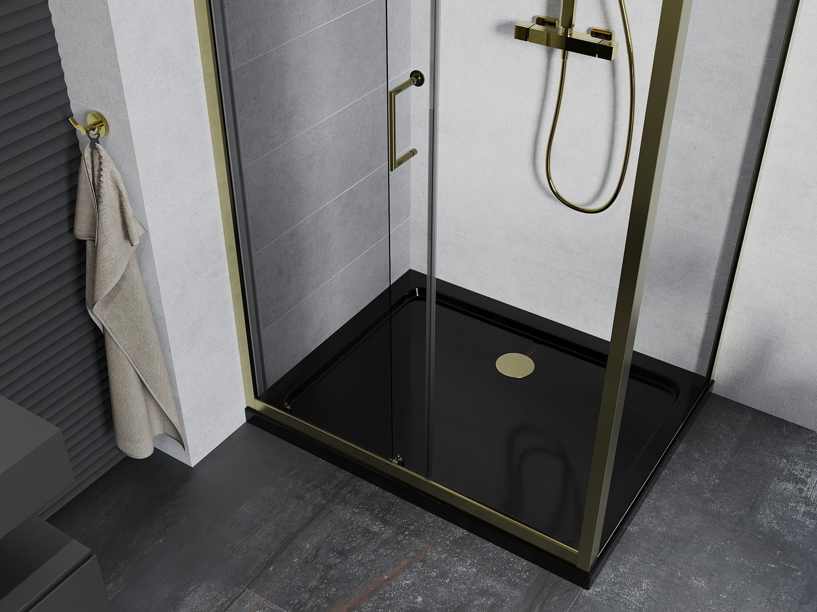 Mexen Apia cabine de douche coulissante 140 x 90 cm, transparent, doré + receveur plat, noir - 840-140-090-50-00-4070G