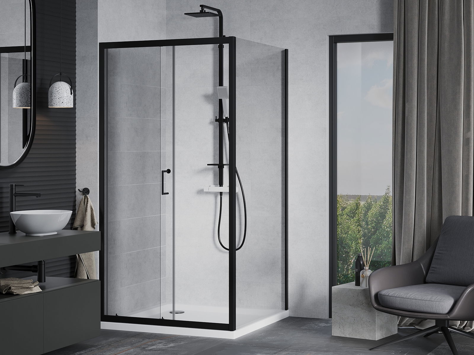 La poignée pratique et confortable est fabriquée en métal durable et résistant. Sa forme à la mode, combinée à une finition assortie à la couleur des profilés, donne à l'ensemble un aspect moderne et stylé, soulignant l'esthétique de chaque salle de bain.