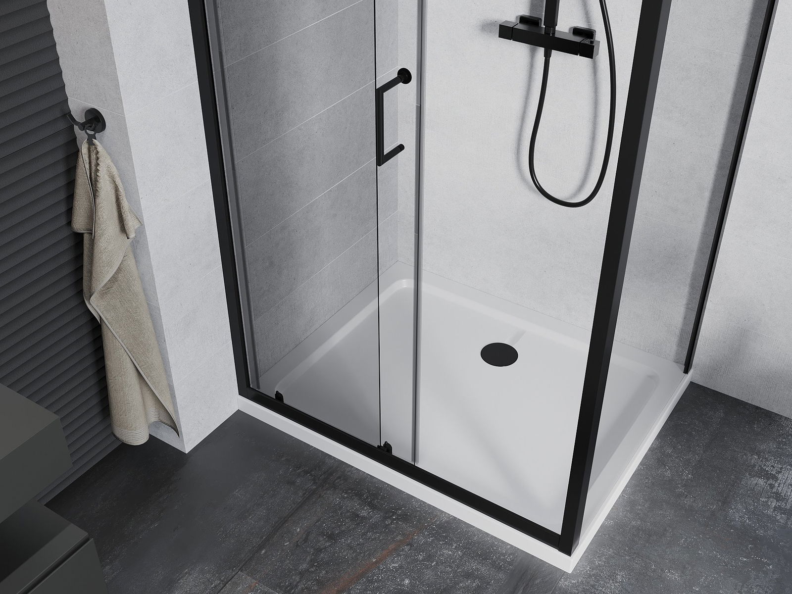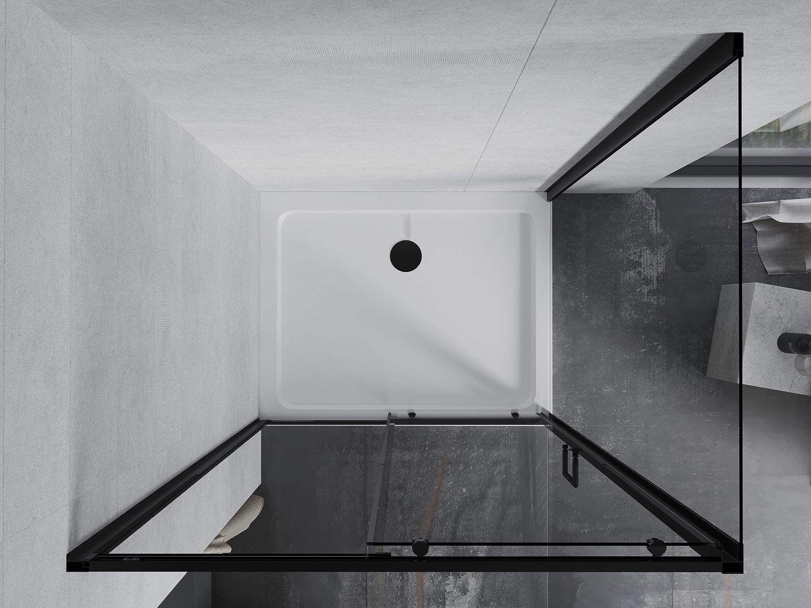 Mexen Apia cabine de douche coulissante 130 x 90 cm, transparente, noire + receveur Flat, blanc - 840-130-090-70-00-4010B