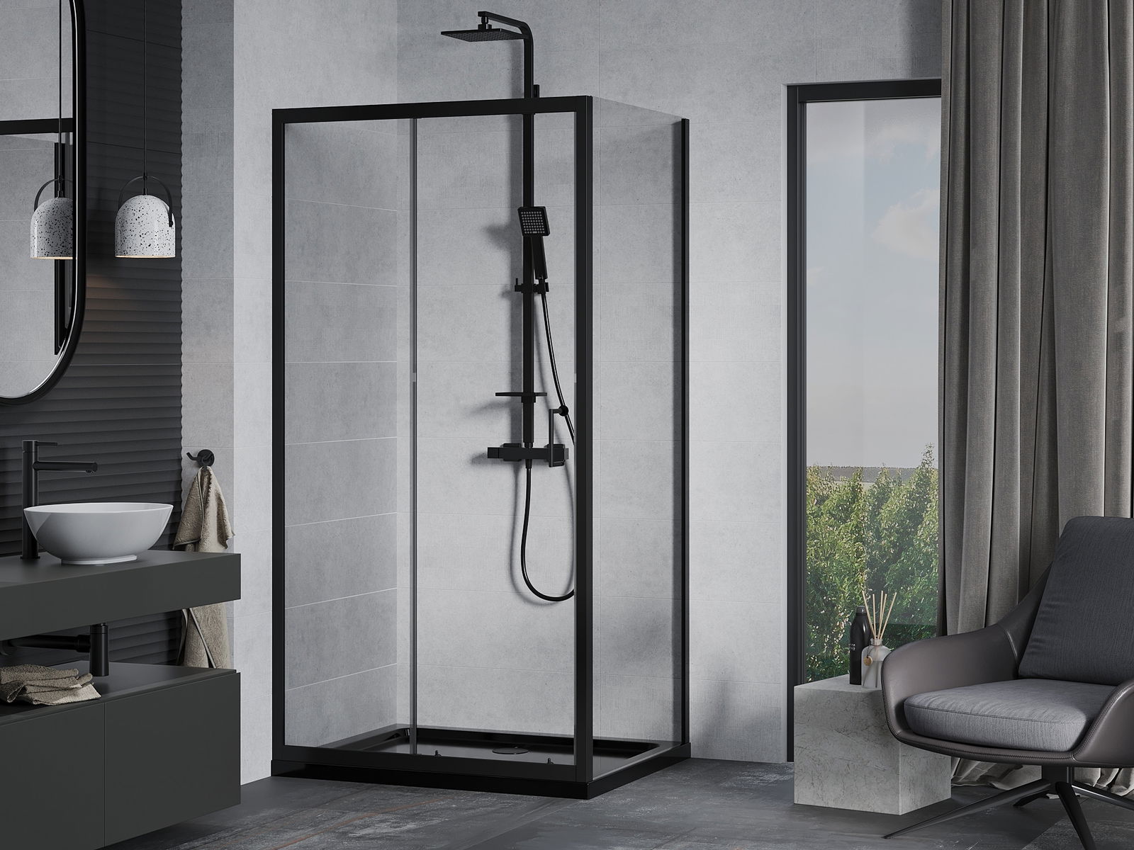 La poignée pratique et confortable est fabriquée en métal durable et résistant. Sa forme à la mode, combinée à une finition assortie à la couleur des profilés, donne à l'ensemble un aspect moderne et stylé, soulignant l'esthétique de chaque salle de bain.