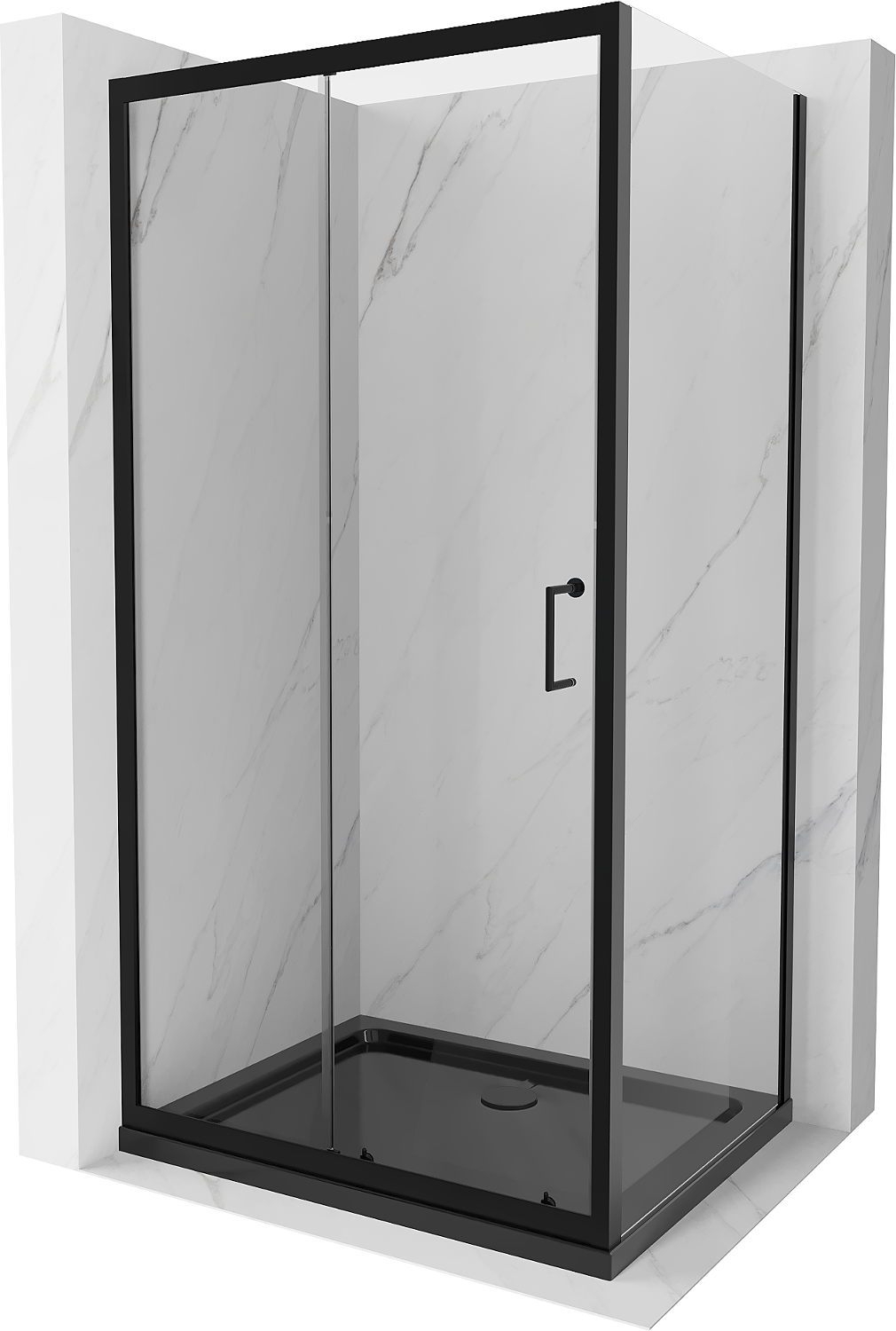 Mexen Apia cabine de douche coulissante 130 x 80 cm, transparent, noire + receveur Flat, noir - 840-130-080-70-00-4070B