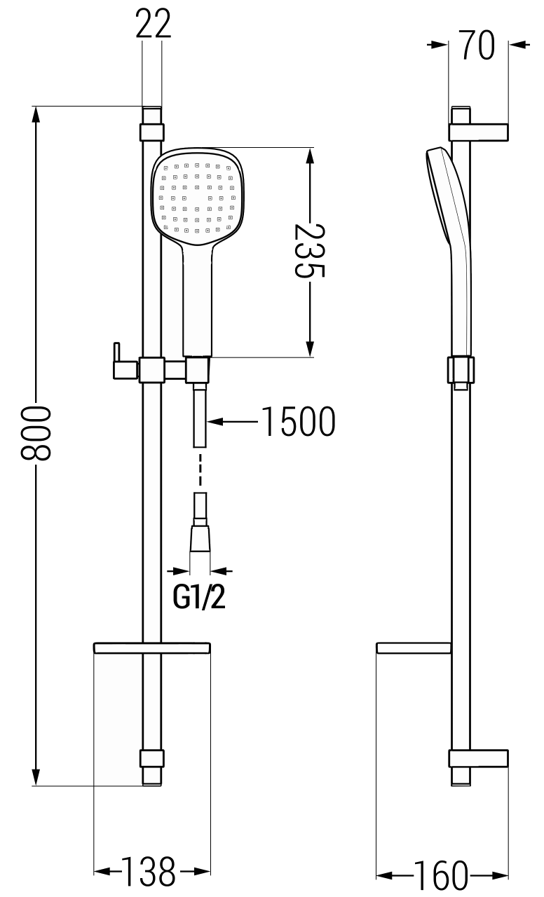 Un raccord avec un filetage de 1/2" est un élément standard couramment utilisé dans les installations d'eau intérieures. Grâce à cela, le raccordement et le montage des éléments supplémentaires de la douche sont beaucoup plus faciles et plus intuitifs.