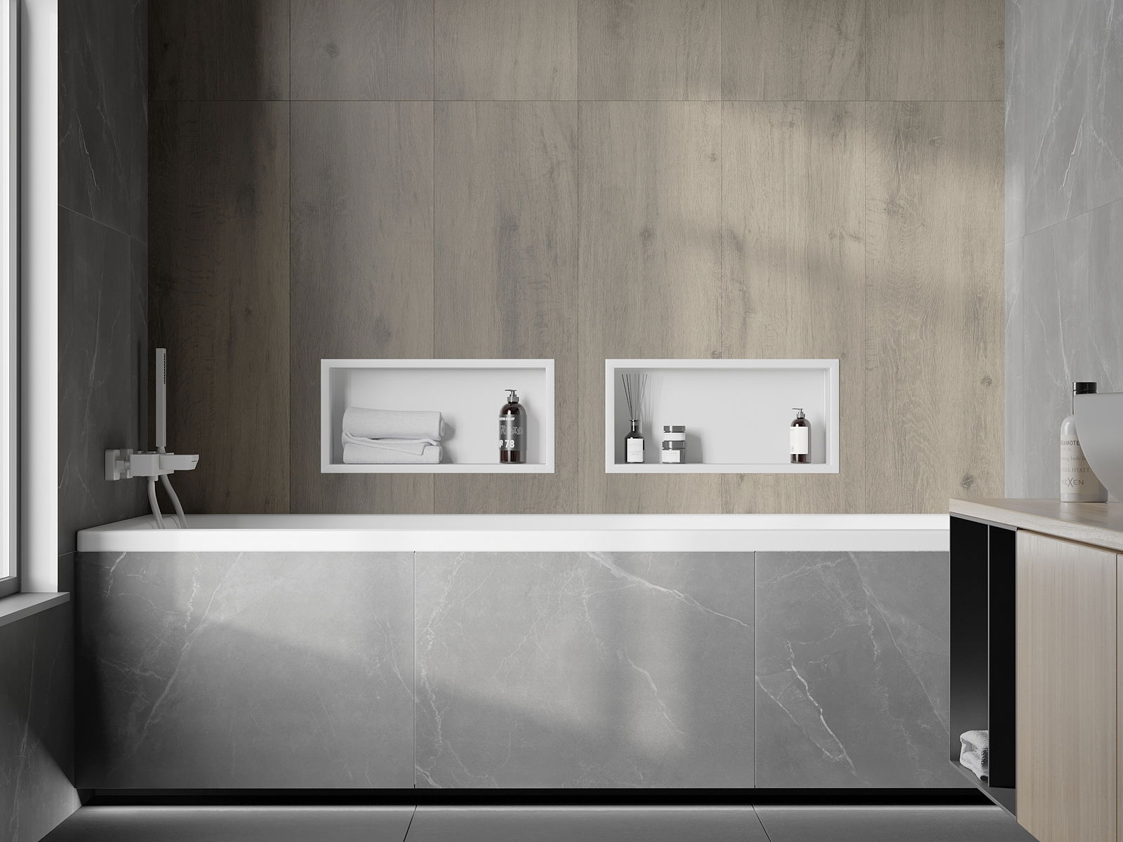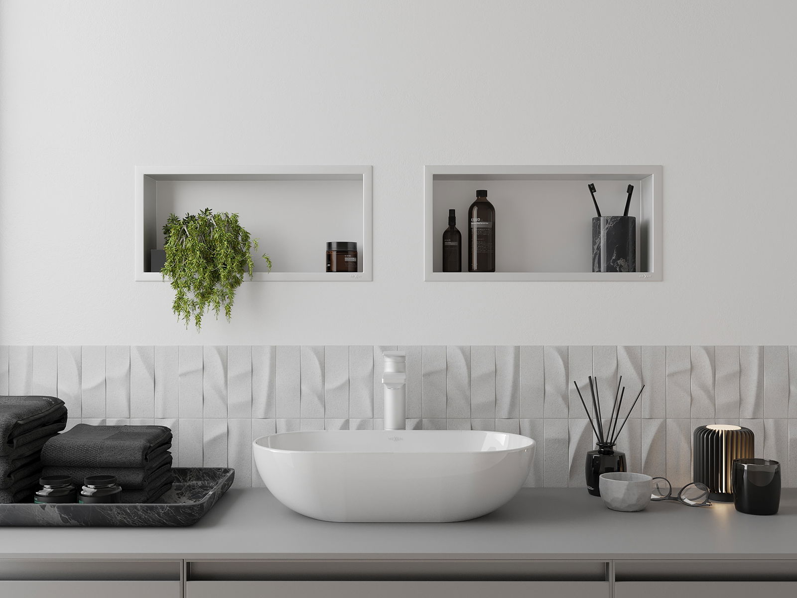 Possibilité d'installation murale ou dans une structure spécialement conçue. Cette solution extrêmement moderne et fonctionnelle permet de gagner de la place et d'harmoniser le produit avec l'esthétique de votre intérieur, créant ainsi une composition harmonieuse.