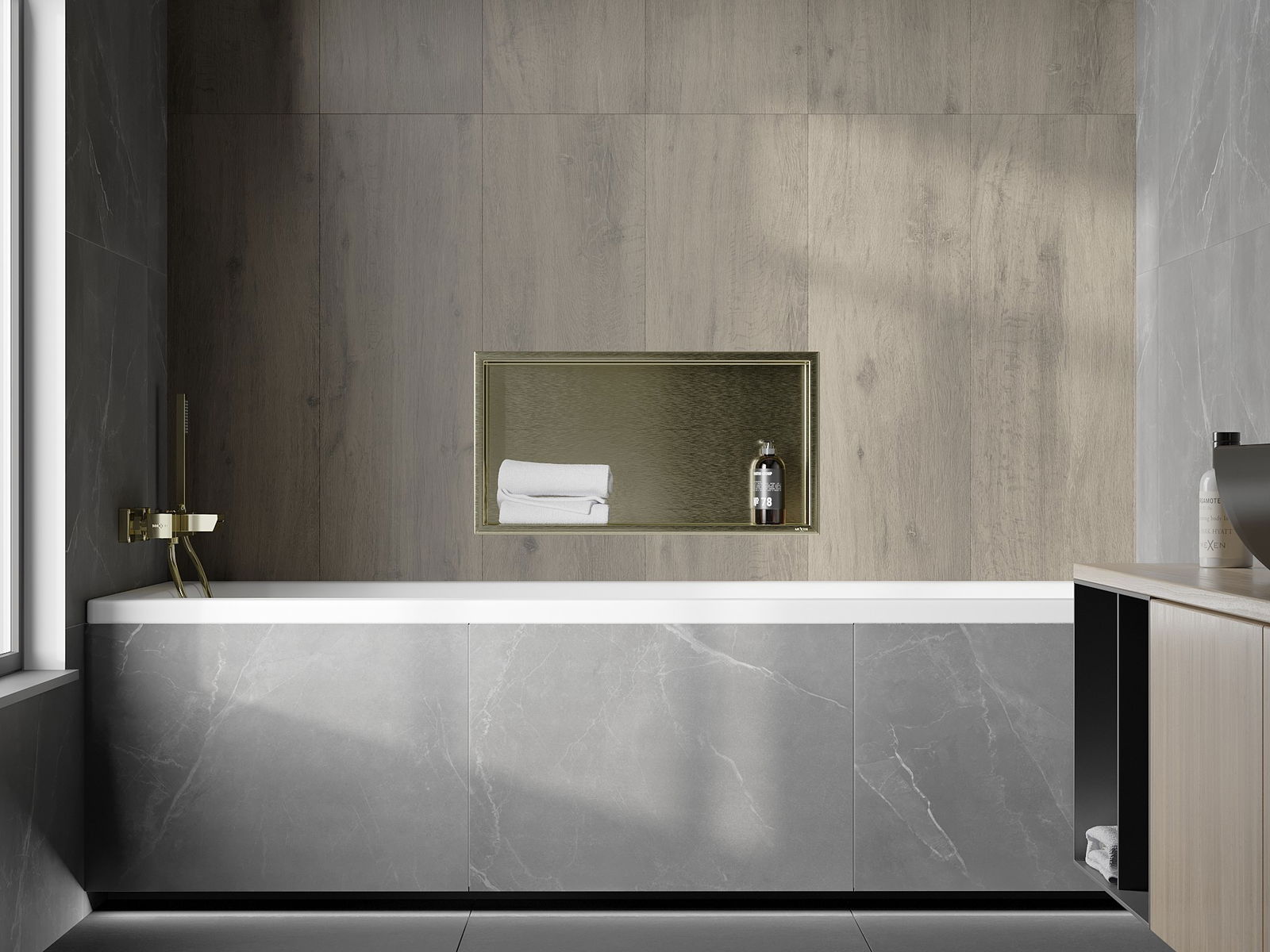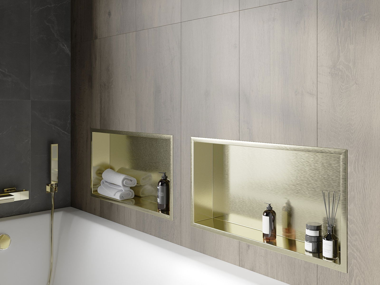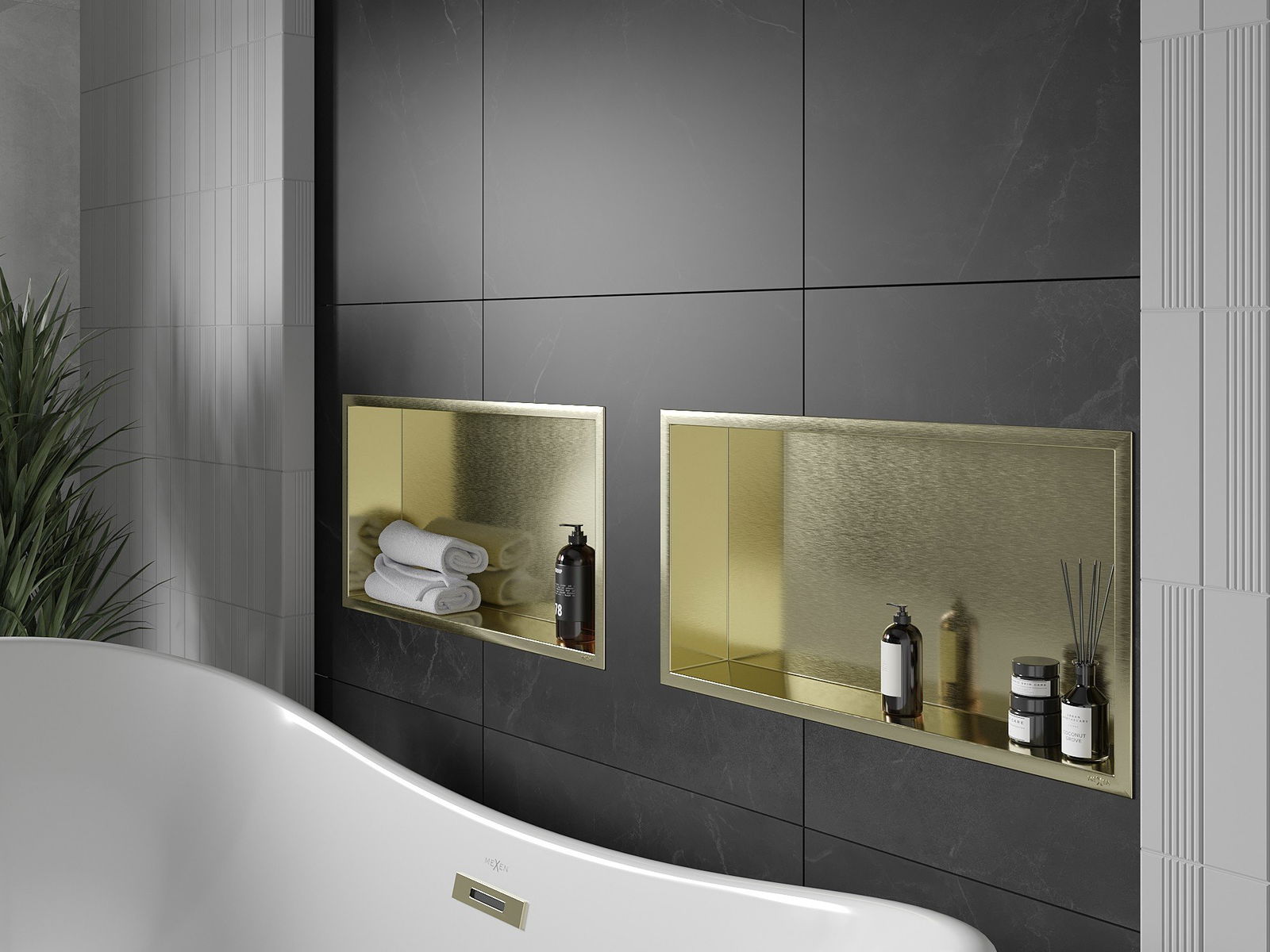 Mexen X-Wall-R étagère encastrée avec rebord 60 x 30 cm, or brossé - 1950603010