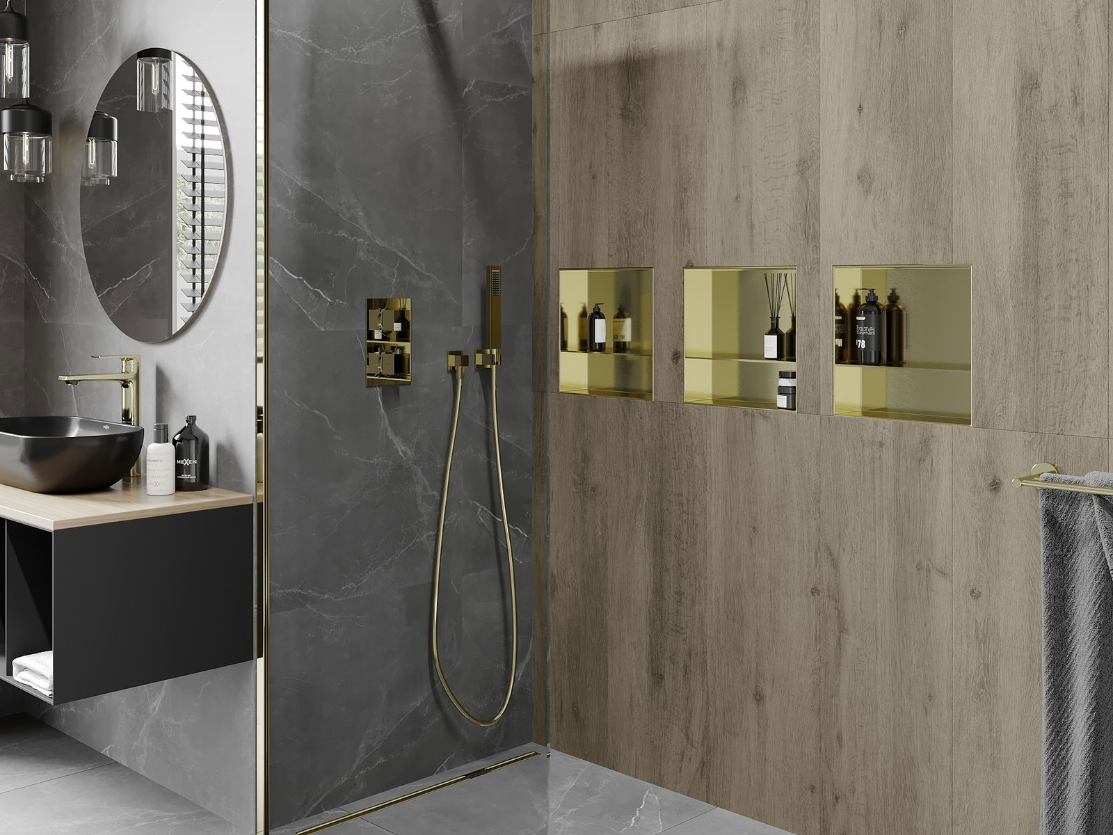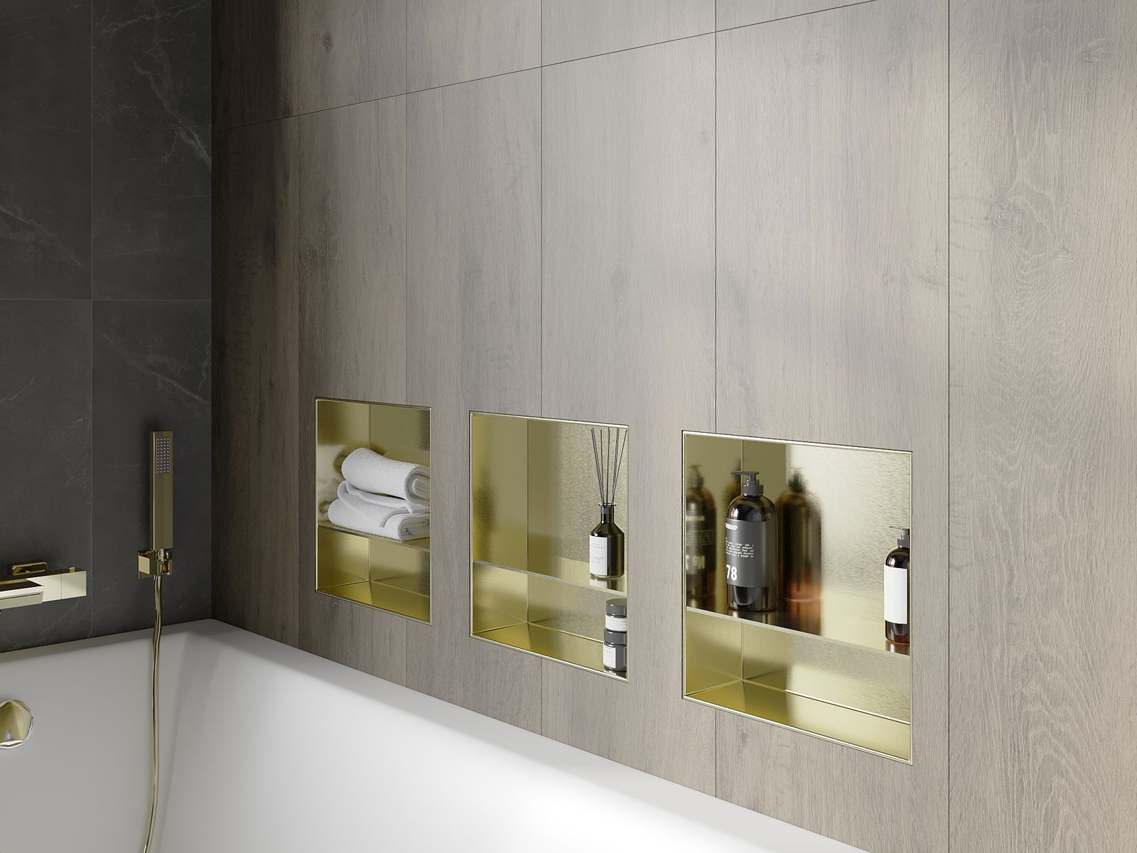 Mexen X-Wall-NR étagère encastrée sans bride avec tablette 30 x 30 cm, or brossé - 1951303010S