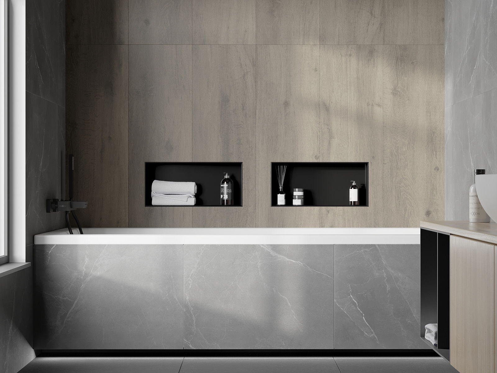 Possibilité de montage dans un mur ou dans une construction spécialement préparée. C'est une solution extrêmement moderne et fonctionnelle, permettant d'économiser de l'espace ainsi que d'adapter le produit à l'esthétique de l'intérieur et de créer une composition harmonieuse.