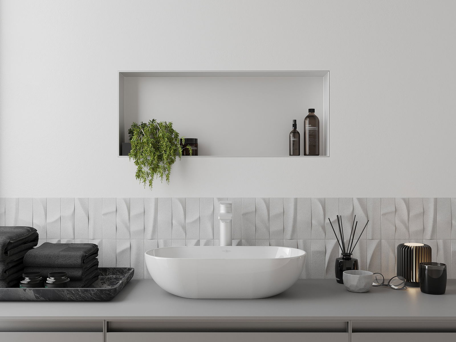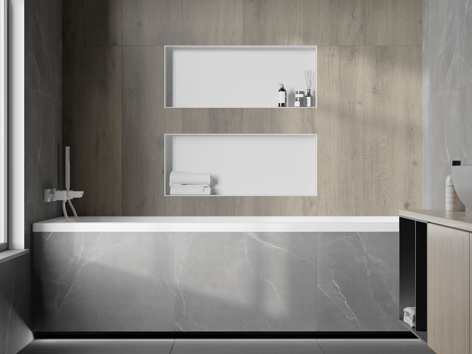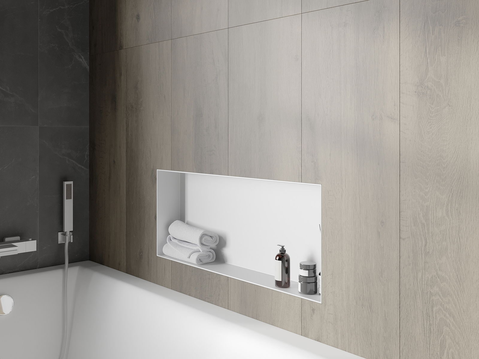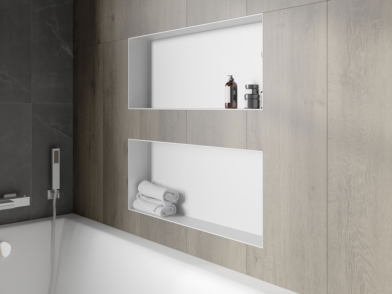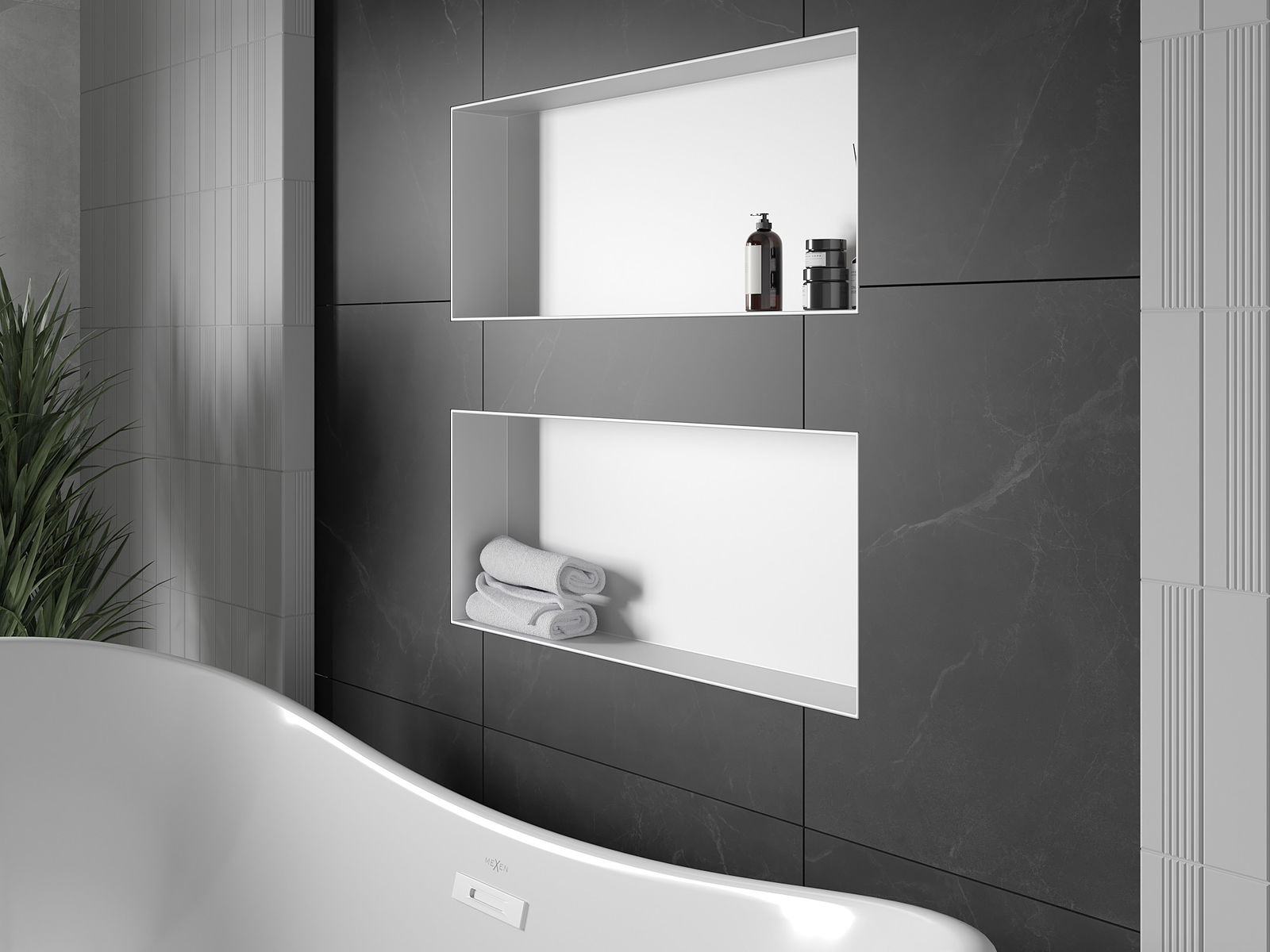 Possibilité de montage dans un mur ou dans une construction spécialement préparée. C'est une solution extrêmement moderne et fonctionnelle, permettant d'économiser de l'espace ainsi que d'adapter le produit à l'esthétique de l'intérieur et de créer une composition harmonieuse.