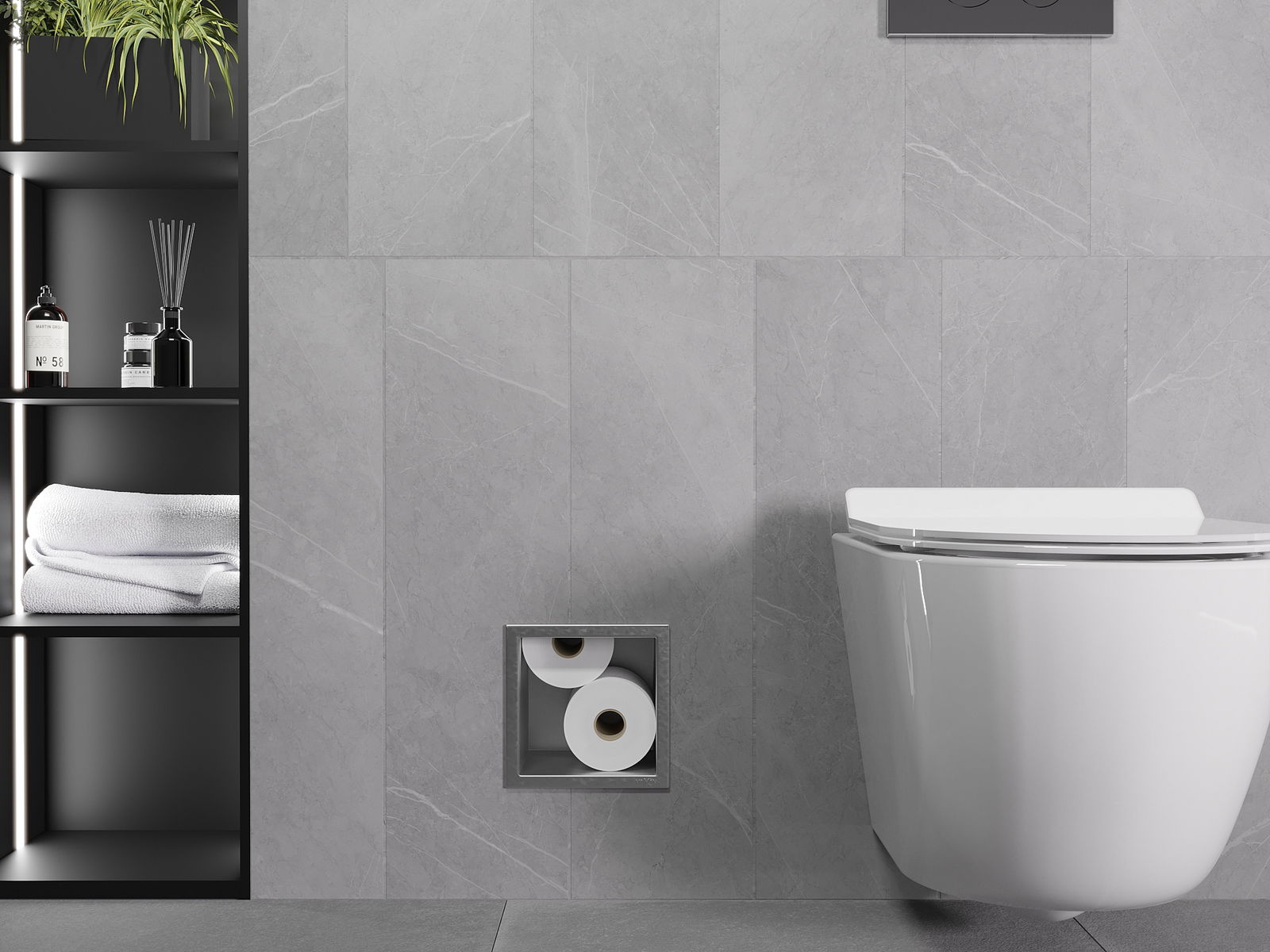 X-wall est un porte-papier toilette pratique avec magasin mural intégré. Un nouveau rouleau est toujours à portée de main et l'espace auparavant réservé au papier toilette peut être réutilisé.
