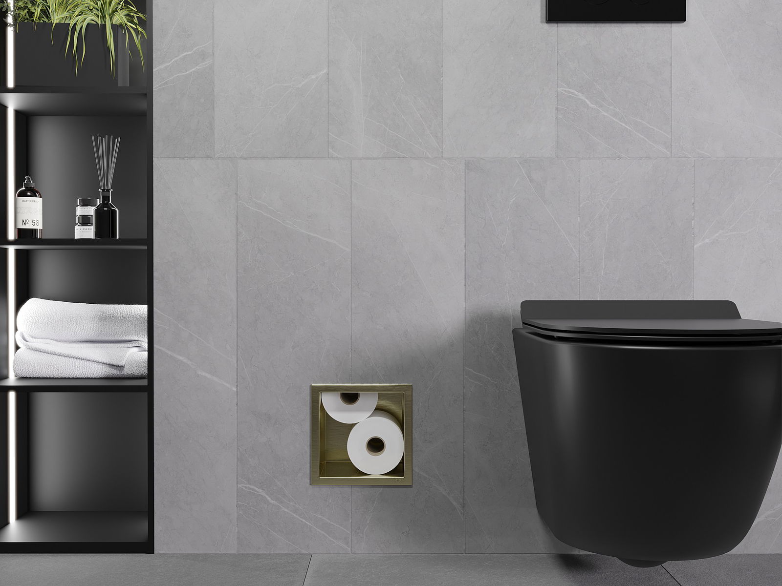 X-wall est un support papier toilette pratique avec un magasin intégré dans le mur. Un nouveau rouleau est toujours à portée de main, et l'espace auparavant dédié au stockage du papier toilette peut être utilisé autrement.