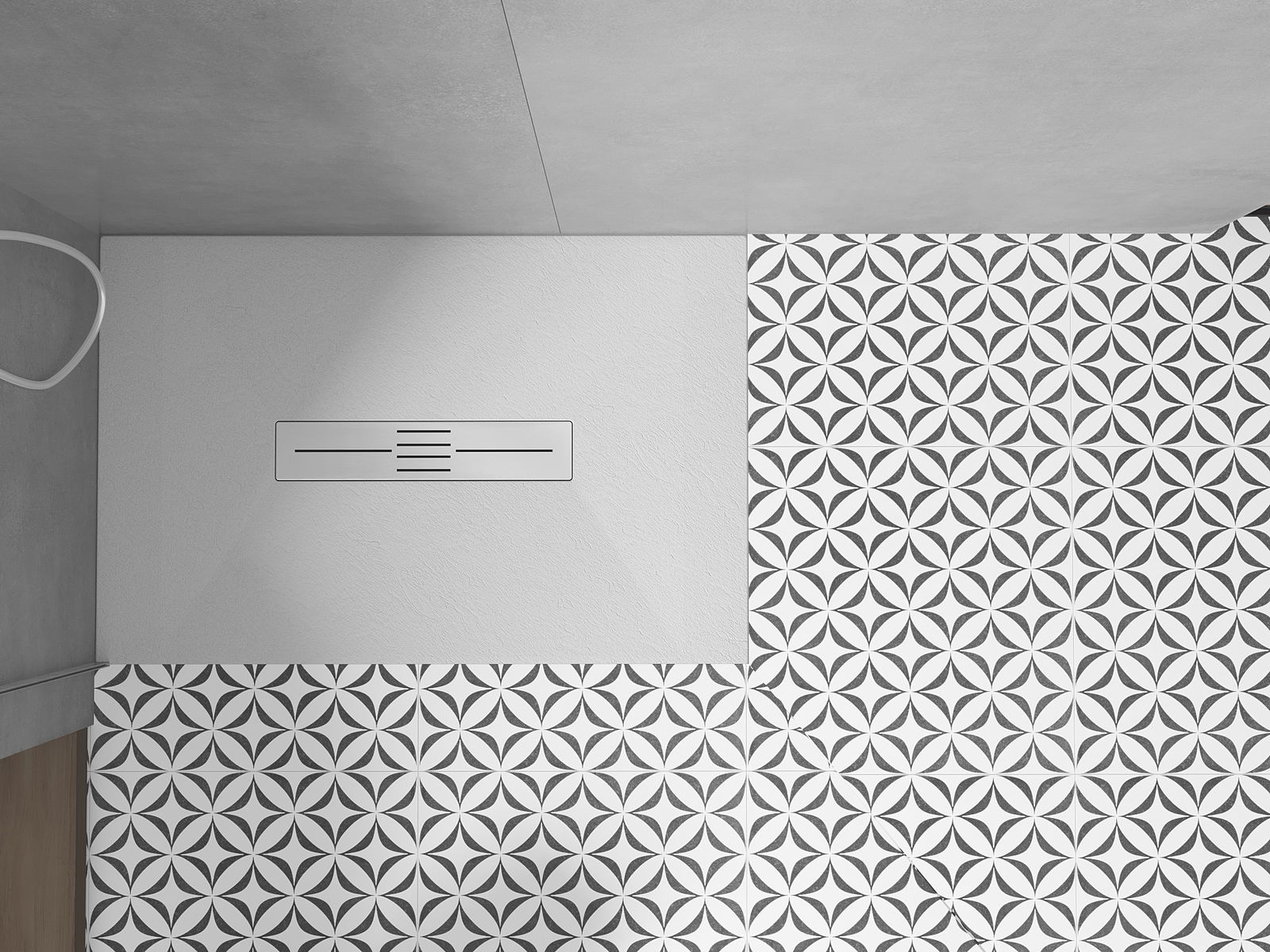 La surface du receveur de douche rappelle par sa structure la pierre. Elle constitue une combinaison exceptionnelle d'un aspect naturel et d'un aménagement intérieur moderne. Elle ajoute du caractère, souligne l'esthétique et l'élégance de la décoration de la salle de bains et séduit par sa forme.