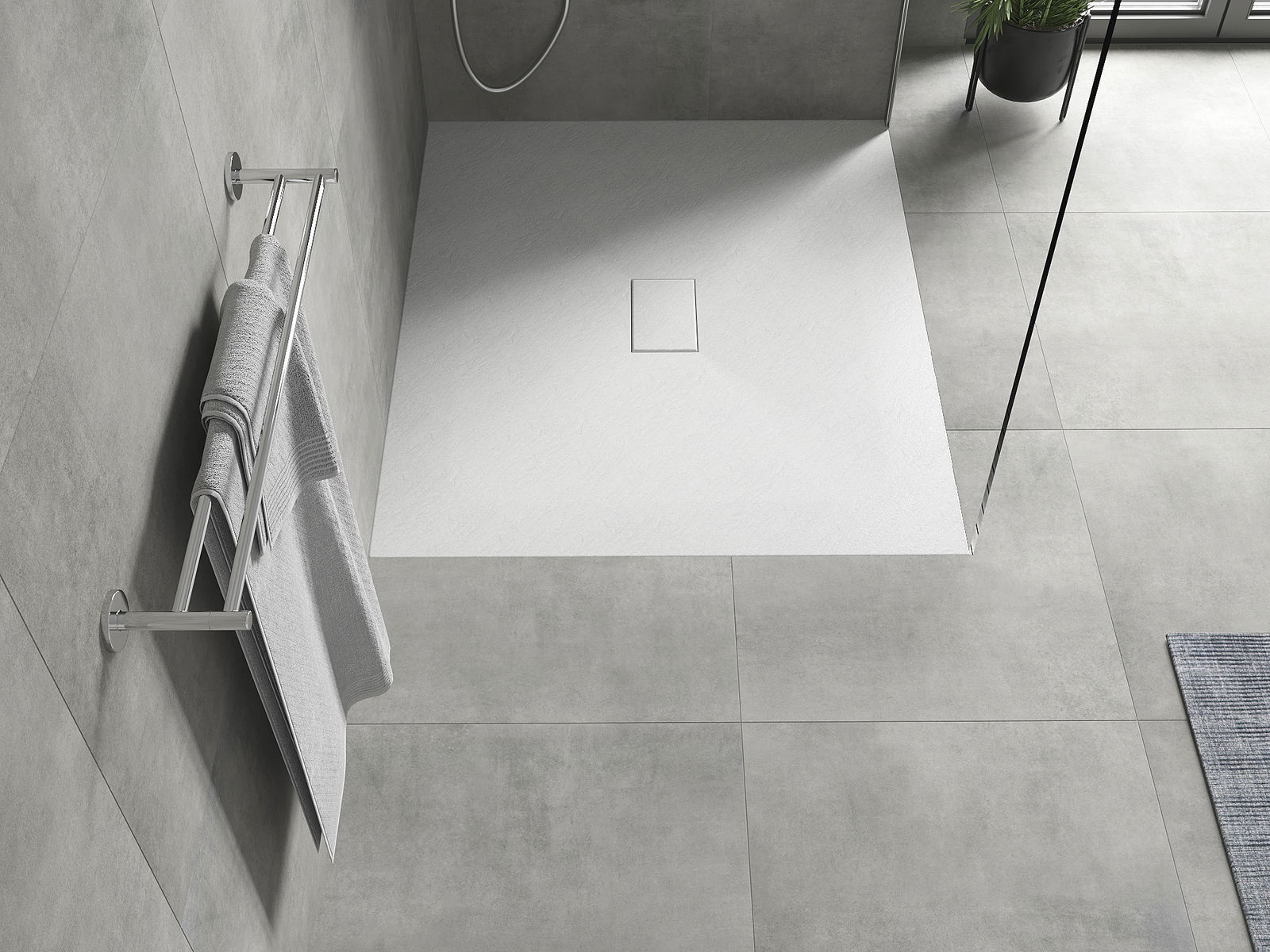 La surface du receveur de douche rappelle par sa structure la pierre. Elle constitue une combinaison exceptionnelle d'un aspect naturel et d'un aménagement intérieur moderne. Elle ajoute du caractère, souligne l'esthétique et l'élégance de la décoration de la salle de bains et séduit par sa forme.