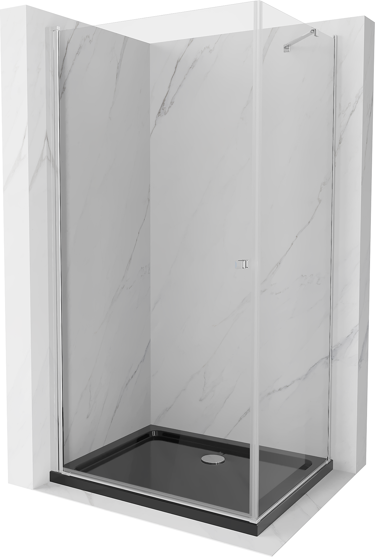 Mexen Pretoria cabine de douche pivotante 80 x 120 cm, transparent, chrome + receveur Flat, noir - 852-080-120-01-00-4070