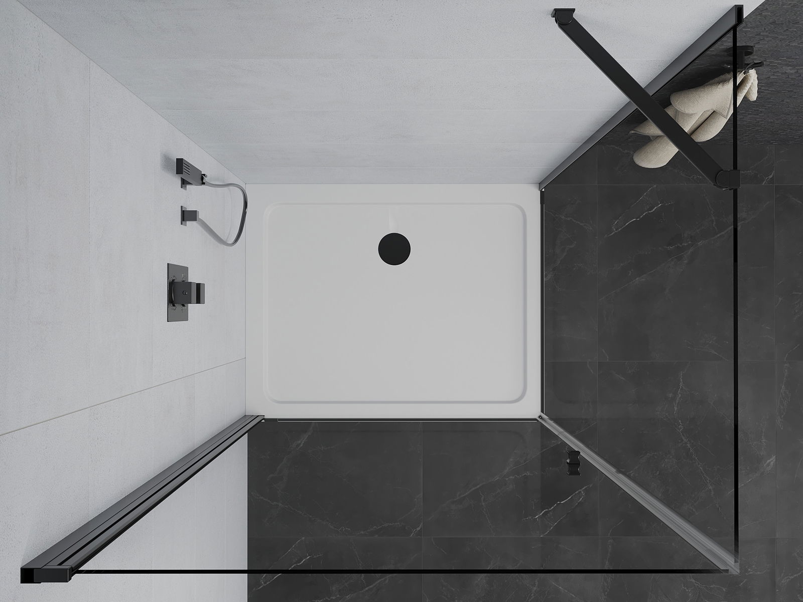 La poignée pratique et confortable est fabriquée en métal durable et résistant. Sa forme à la mode, combinée à une finition assortie à la couleur des profilés, donne à l'ensemble un aspect moderne et stylé, soulignant l'esthétique de chaque salle de bain.