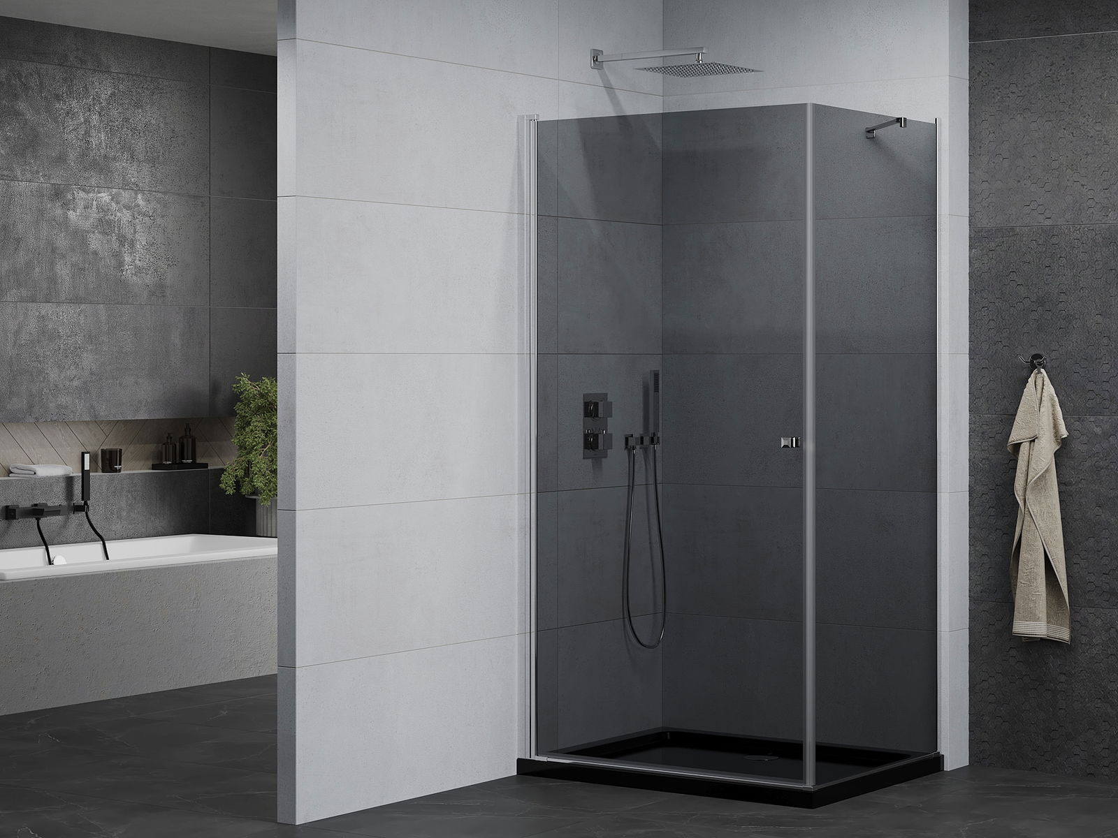 La poignée pratique et confortable est fabriquée en métal durable et résistant. Sa forme à la mode, combinée à une finition assortie à la couleur des profilés, donne à l'ensemble un aspect moderne et stylé, soulignant l'esthétique de chaque salle de bain.
