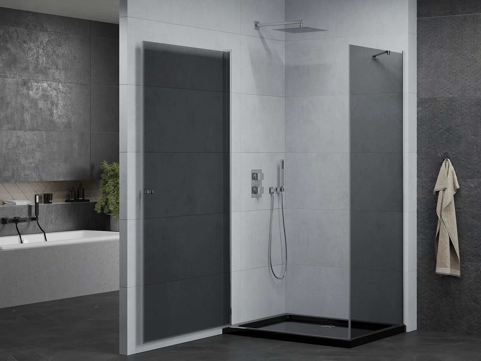 La poignée pratique et confortable est fabriquée en métal durable et résistant. Sa forme à la mode, combinée à une finition assortie à la couleur des profilés, donne à l'ensemble un aspect moderne et stylé, soulignant l'esthétique de chaque salle de bain.