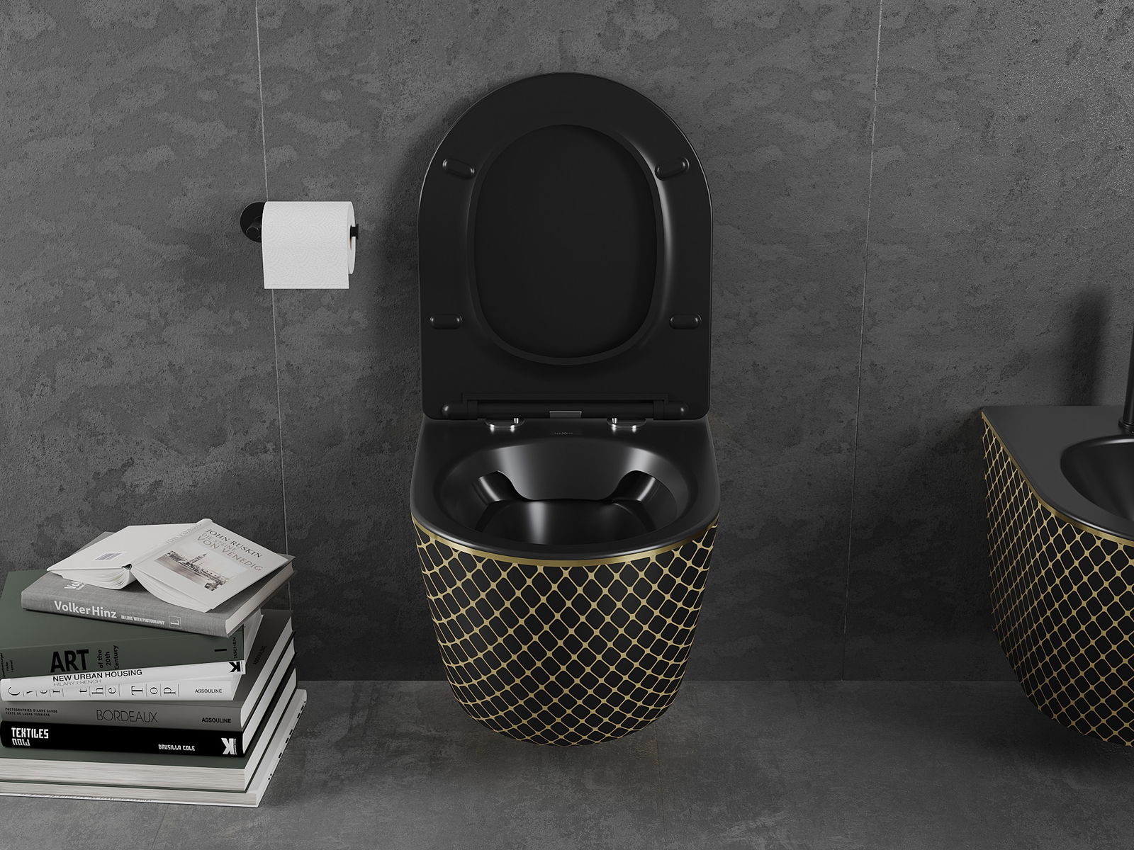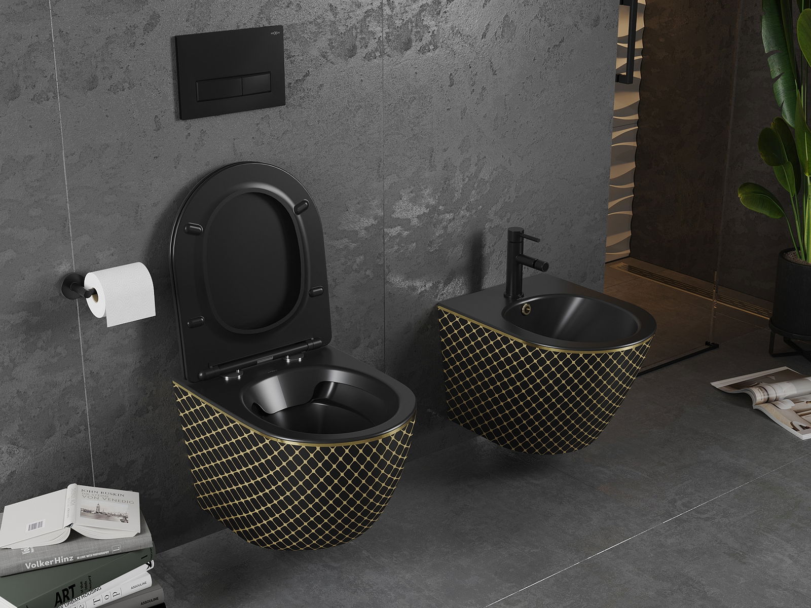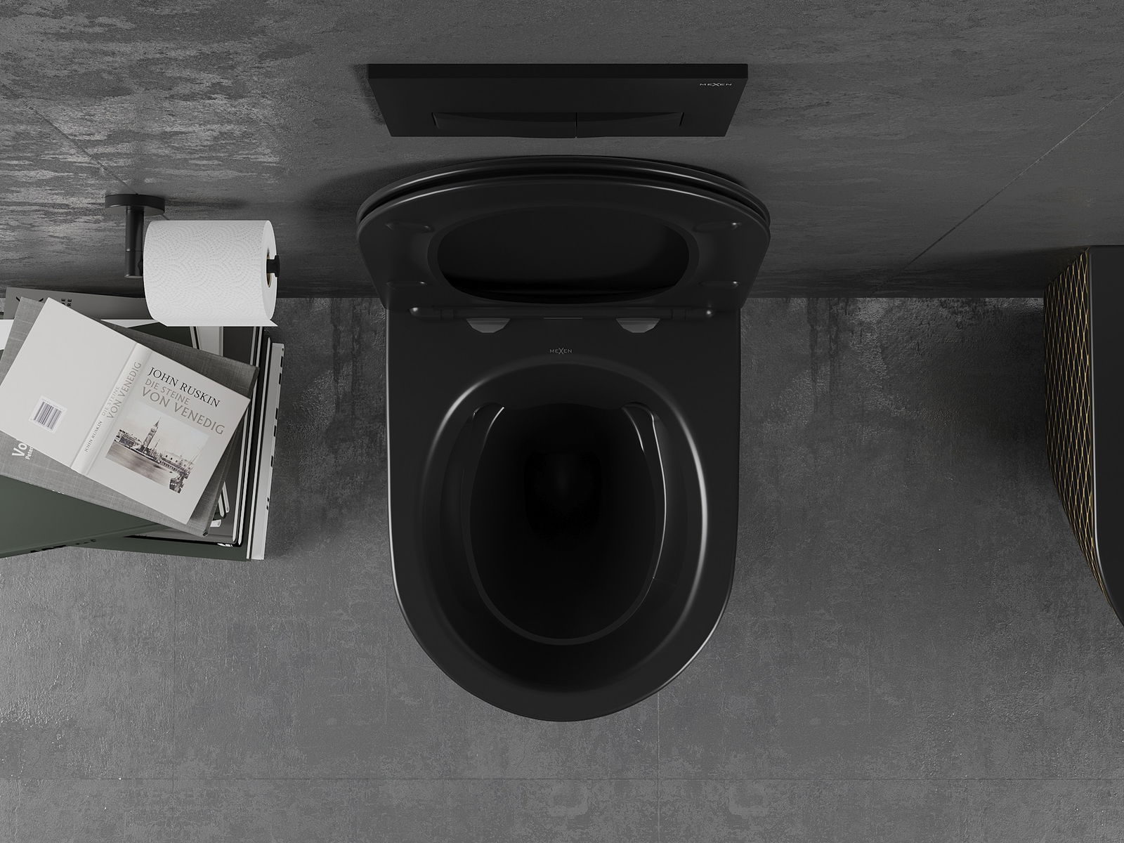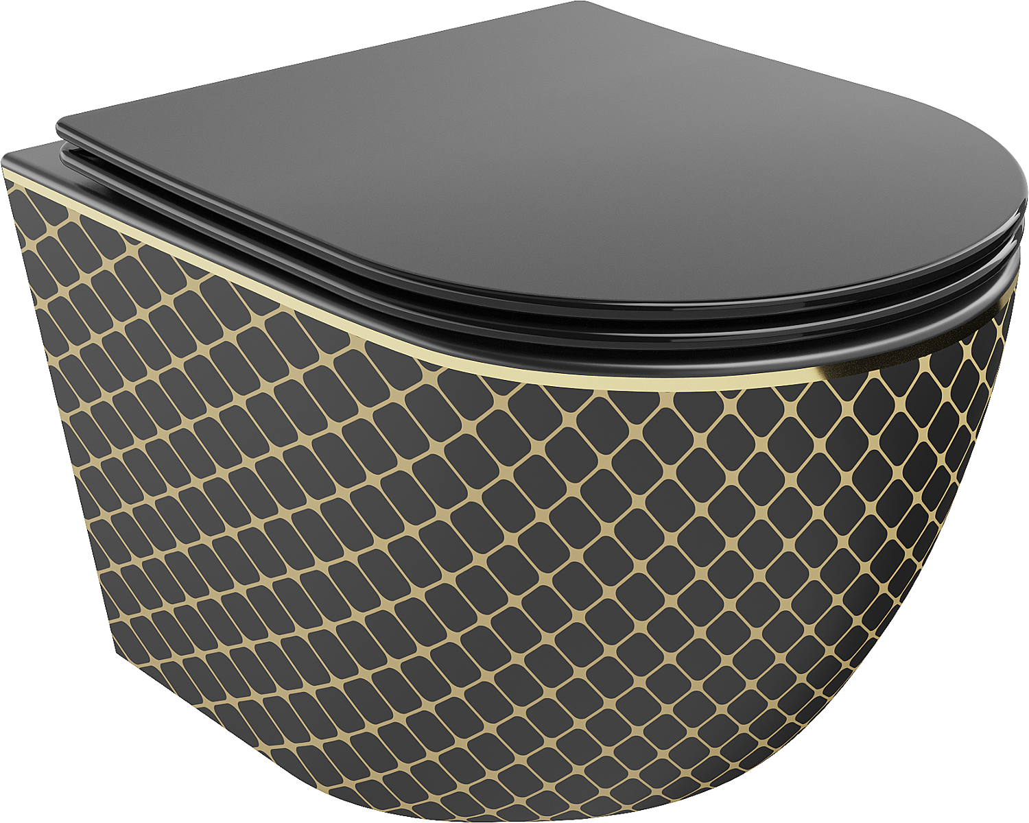 Mexen Lena cuvette WC Rimless avec abattant slim à descente progressive, duroplast, noir mat / motif grille dorée - 30224079