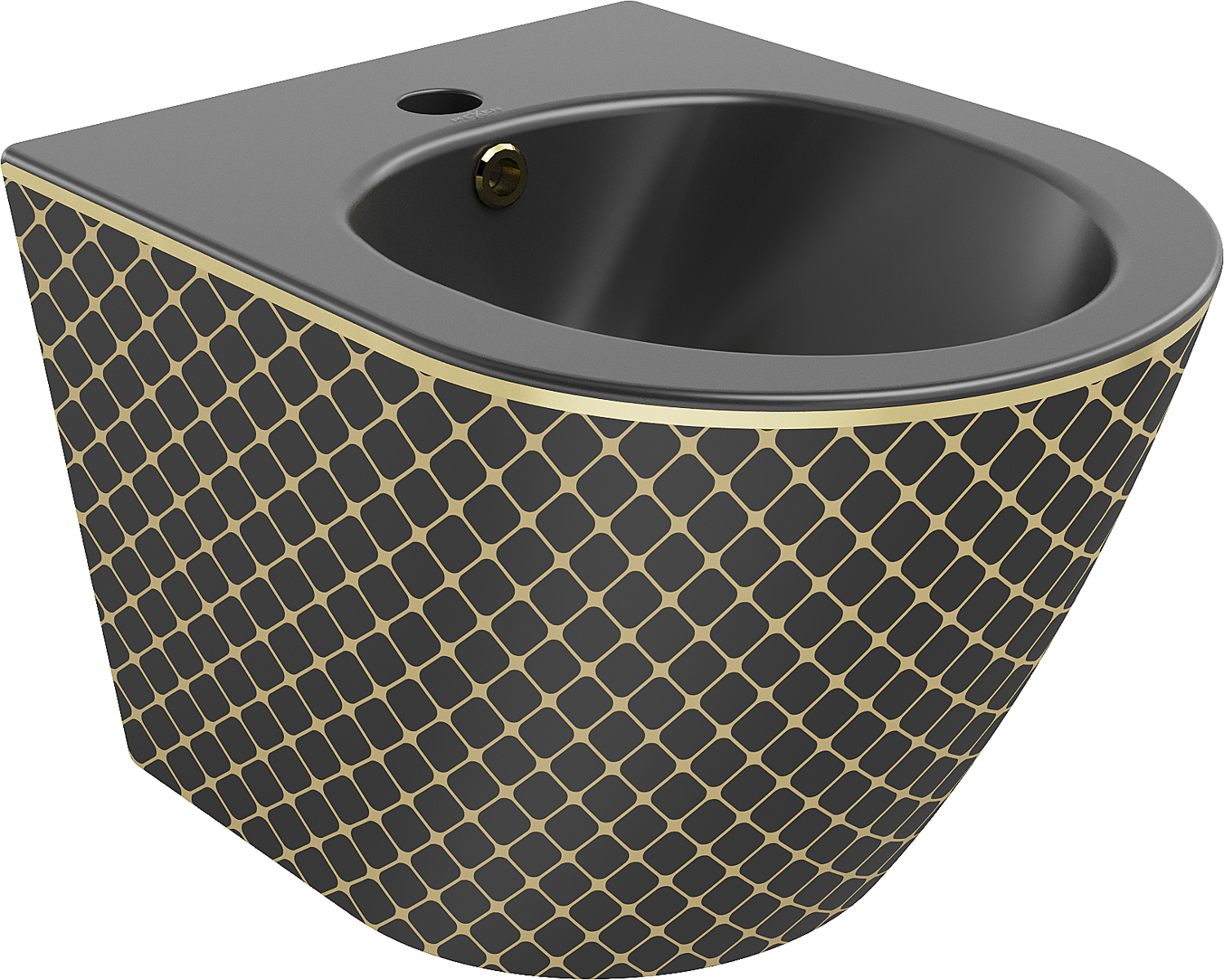 Bidet suspendu Mexen Lena, noir mat/modèle à carreaux doré - 35224879