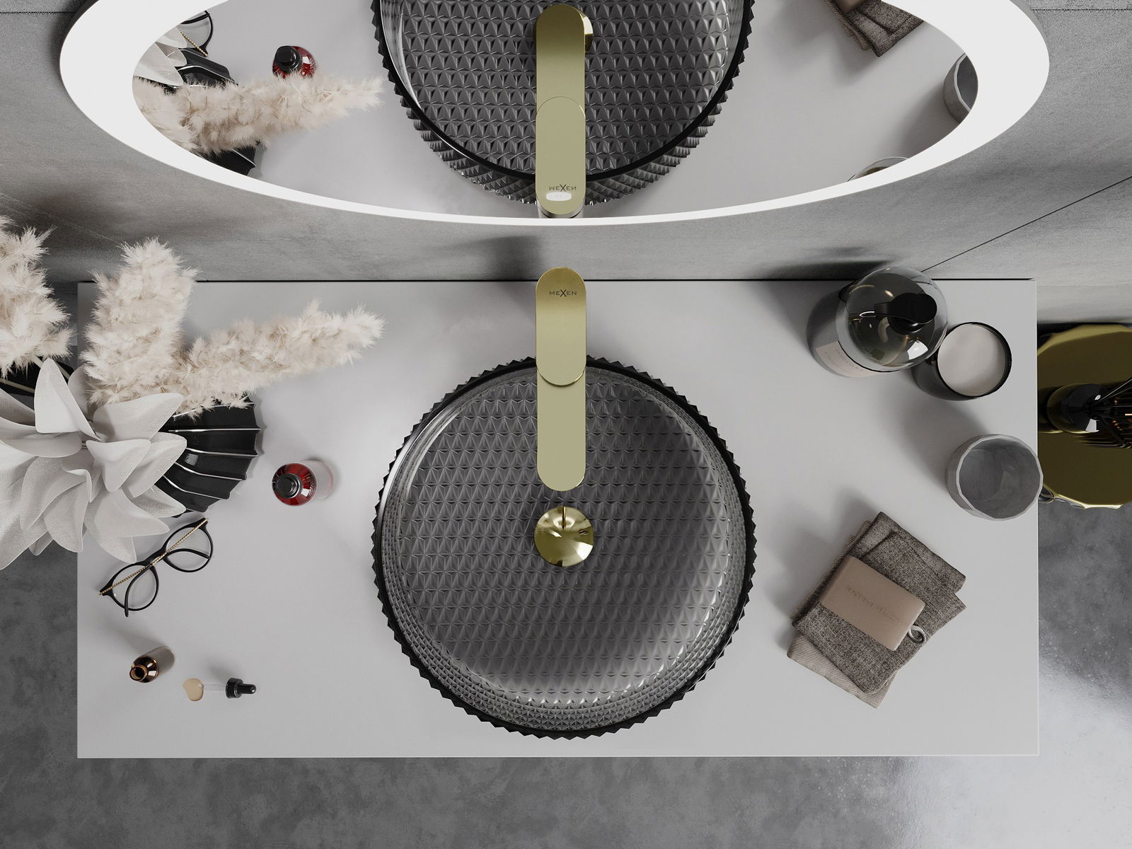 Ce lavabo se distingue par sa structure cristalline unique, qui lui confère un aspect unique et extrêmement efficace. Les cristaux scintillent à la lumière, attirant le regard et apportant une touche d'élégance. Une solution pratique et élégante pour toute salle de bains.