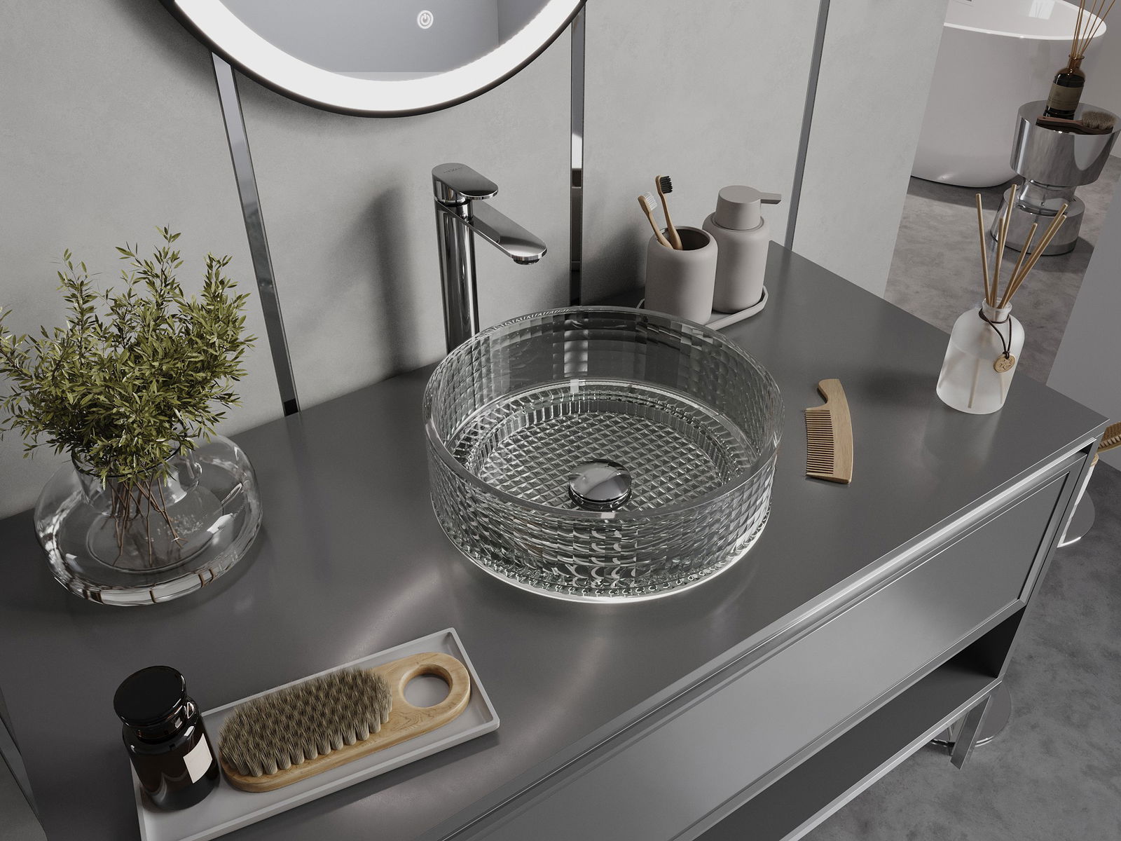 Ce lavabo se distingue par sa structure cristalline unique, qui lui confère un aspect unique et extrêmement efficace. Les cristaux scintillent à la lumière, attirant le regard et apportant une touche d'élégance. Une solution pratique et élégante pour toute salle de bains.