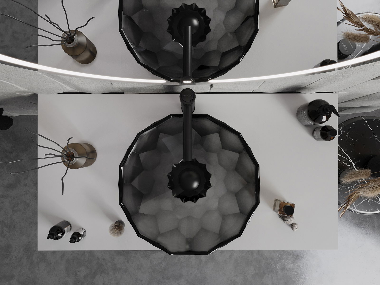 Le lavabo se distingue par une structure unique de cristaux, lui conférant une apparence unique et extrêmement spectaculaire. Les cristaux scintillent à la lumière, attirant l'œil et ajoutant de l'élégance. Une solution pratique et élégante pour chaque salle de bain.